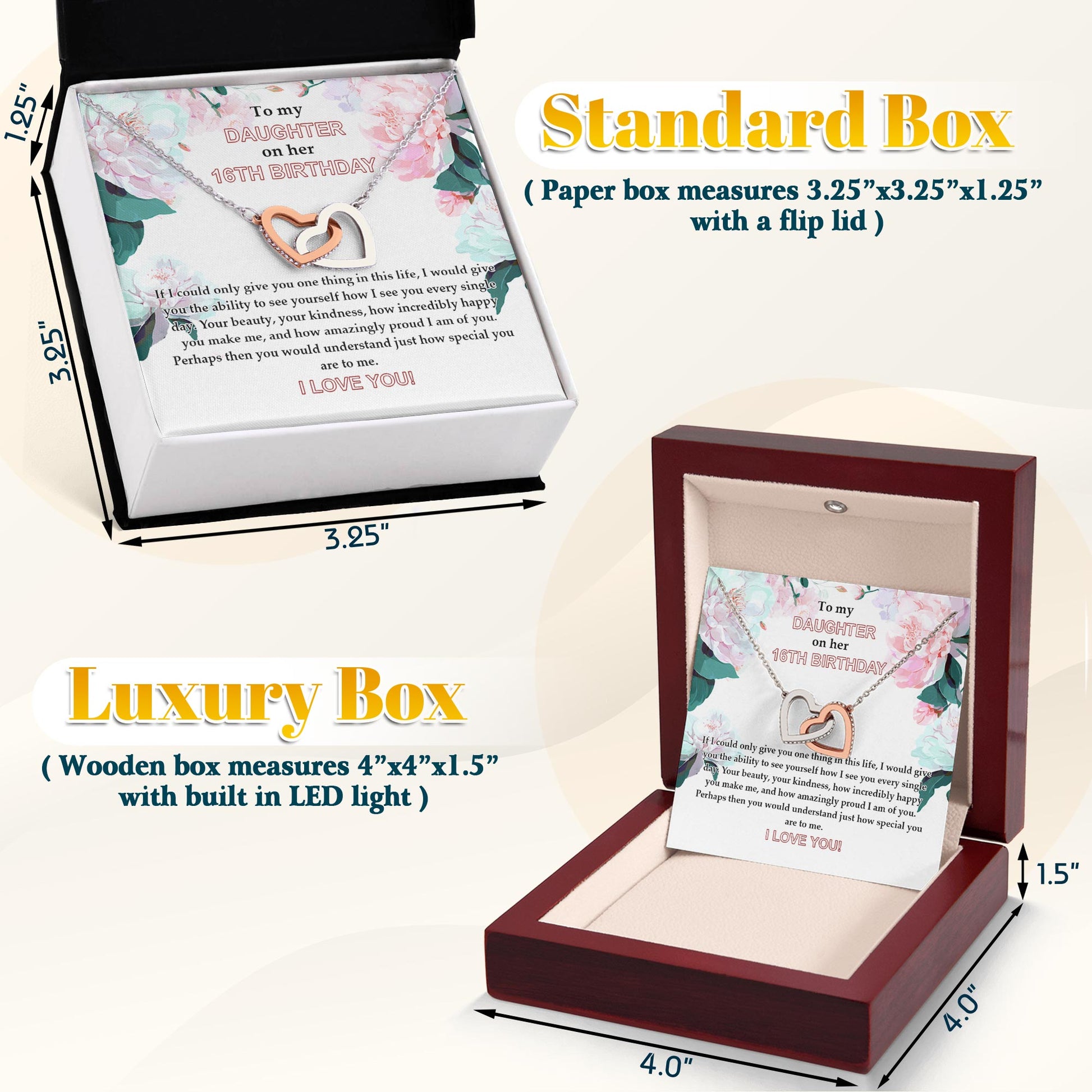 Netecom Personalized To My Daughter Necklace from Mom and Dad, Custom Name Floral Card, Interlocking Hearts Jewelry Gift for Birthday, Christmas