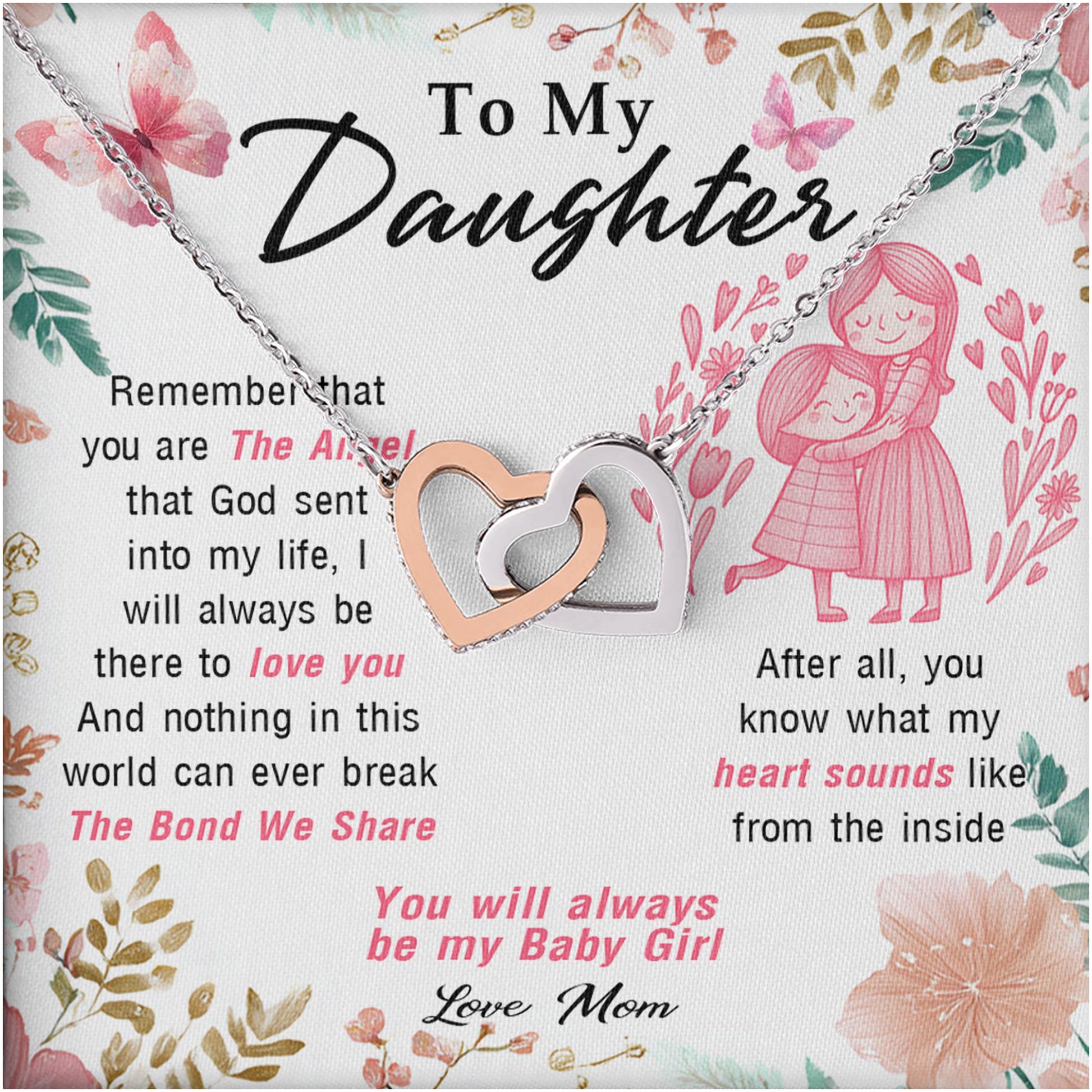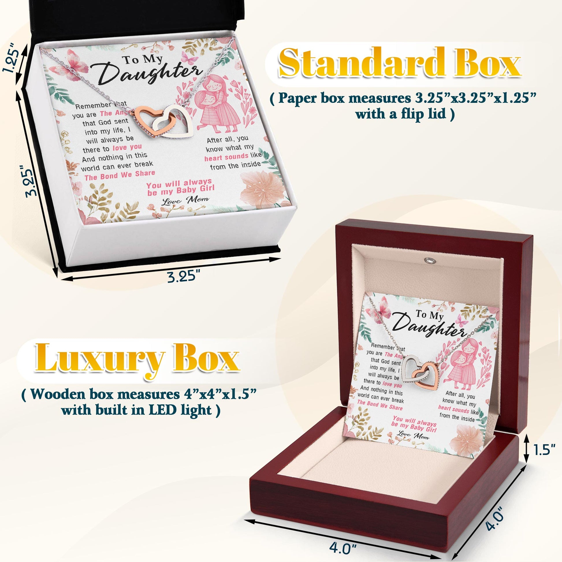 Netecom Personalized To My Daughter Necklace from Mom, Custom Message Card with Name, Remember That You Are Angel Interlocking Heart Jewelry Gift for Birthday, Christmas