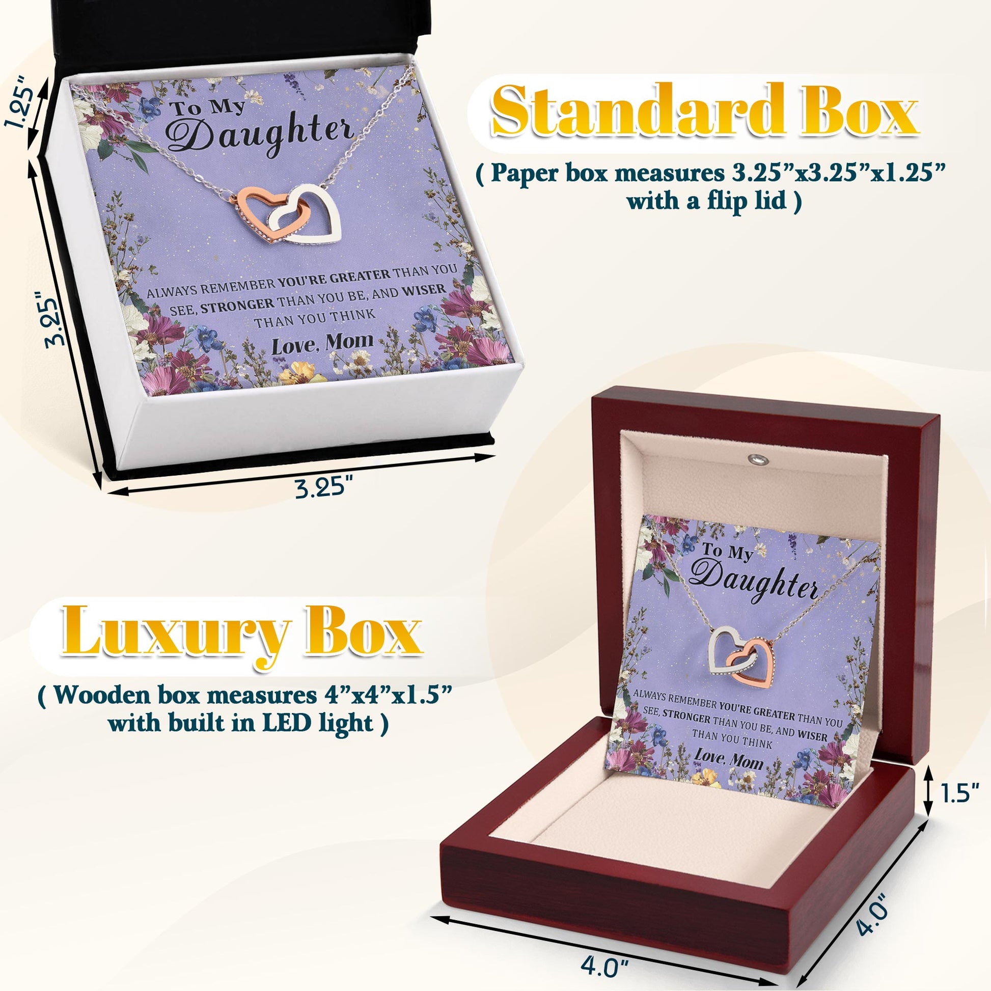 Netecom Personalized To My Daughter Necklace from Mom, Interlocking Heart Jewelry with Floral Card, Birthday or Christmas Gift