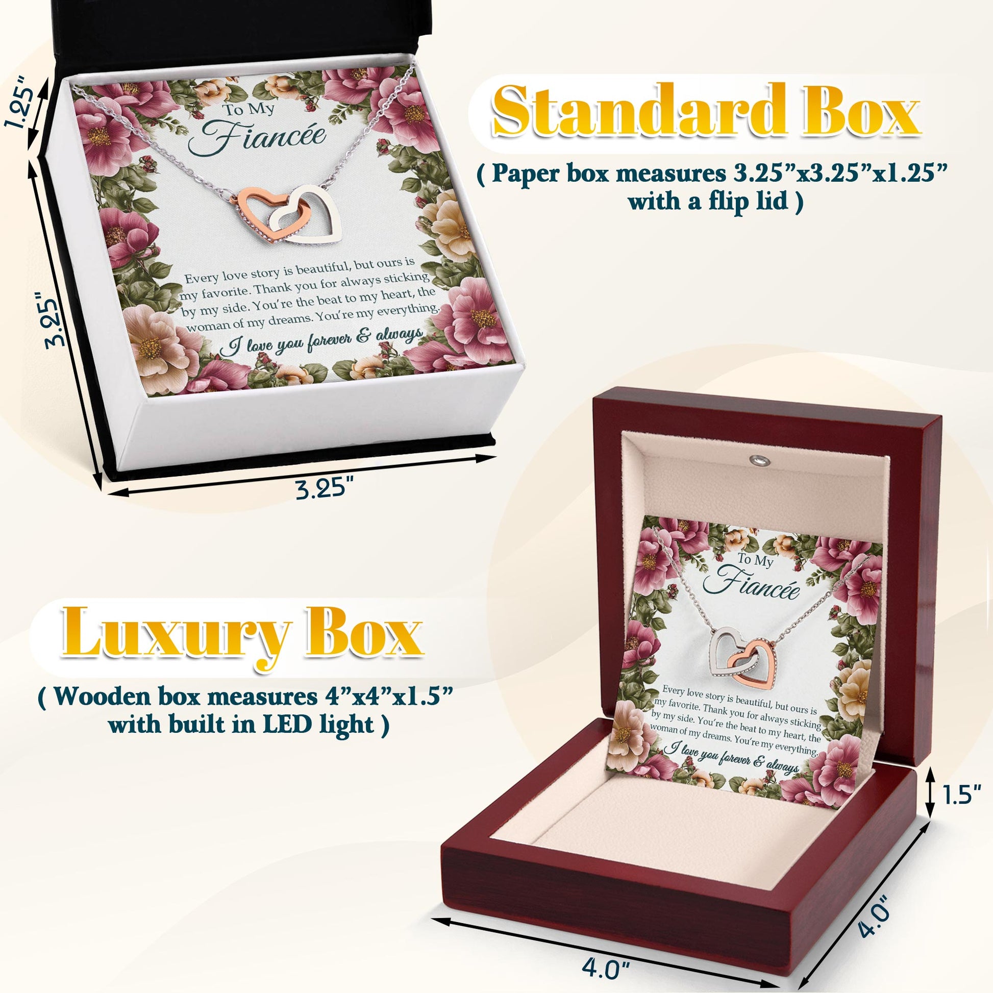 Netecom Personalized To My Fiancee Necklace from Fiance, Custom Message Card with Name, Interlocking Heart Jewelry Gift for Wedding, Anniversary, Birthday, Christmas
