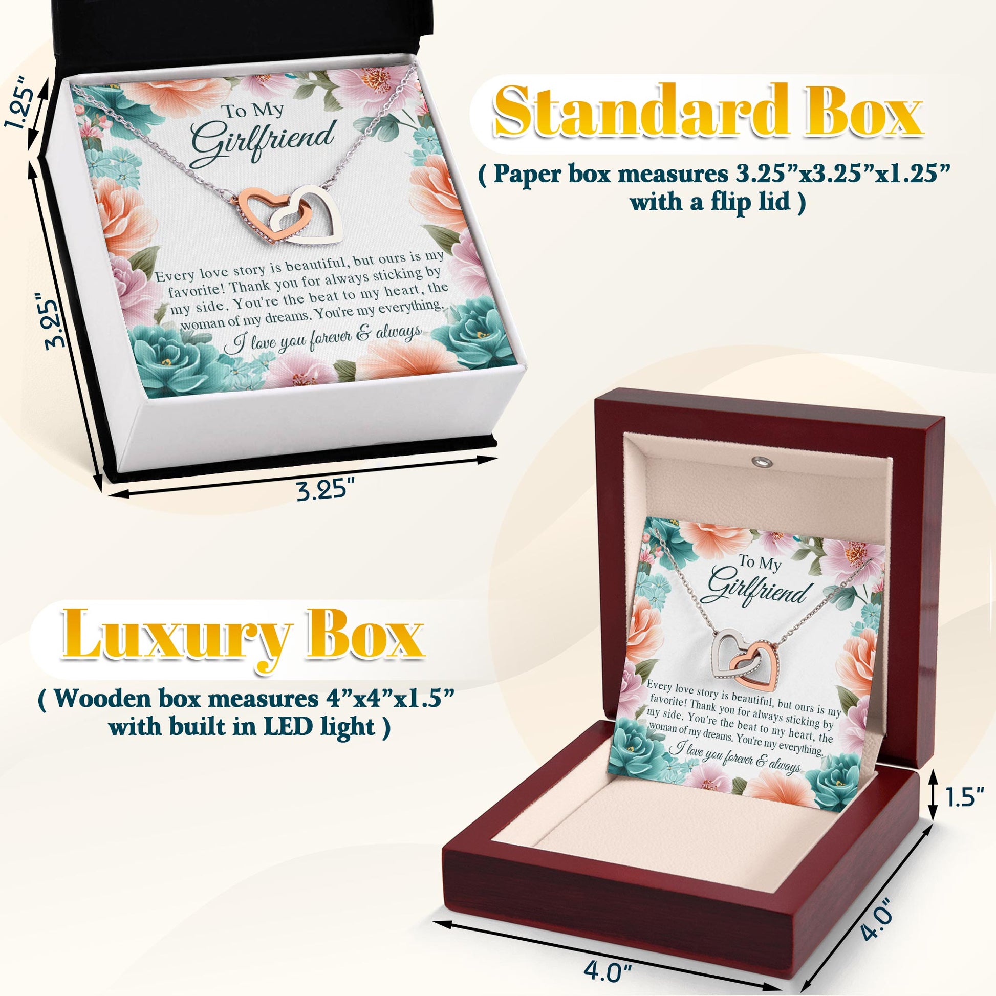 Netecom Personalized To My Girlfriend Necklace from Boyfriend, Custom Flowers Message Card with Name, Interlocking Heart Jewelry Gift for Anniversary, Birthday, Christmas