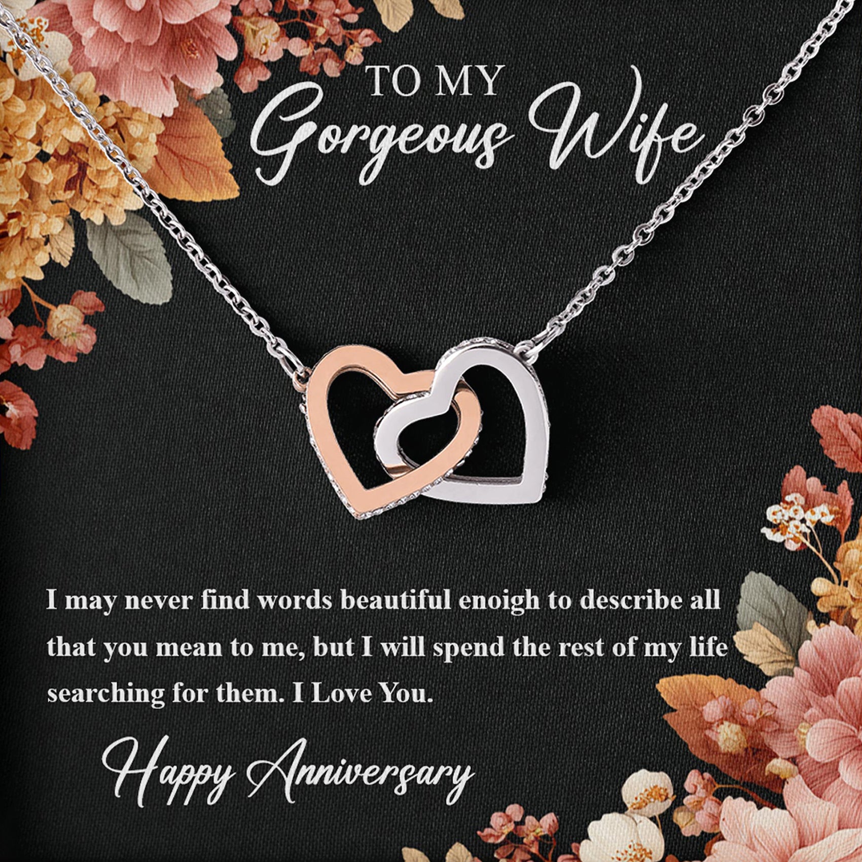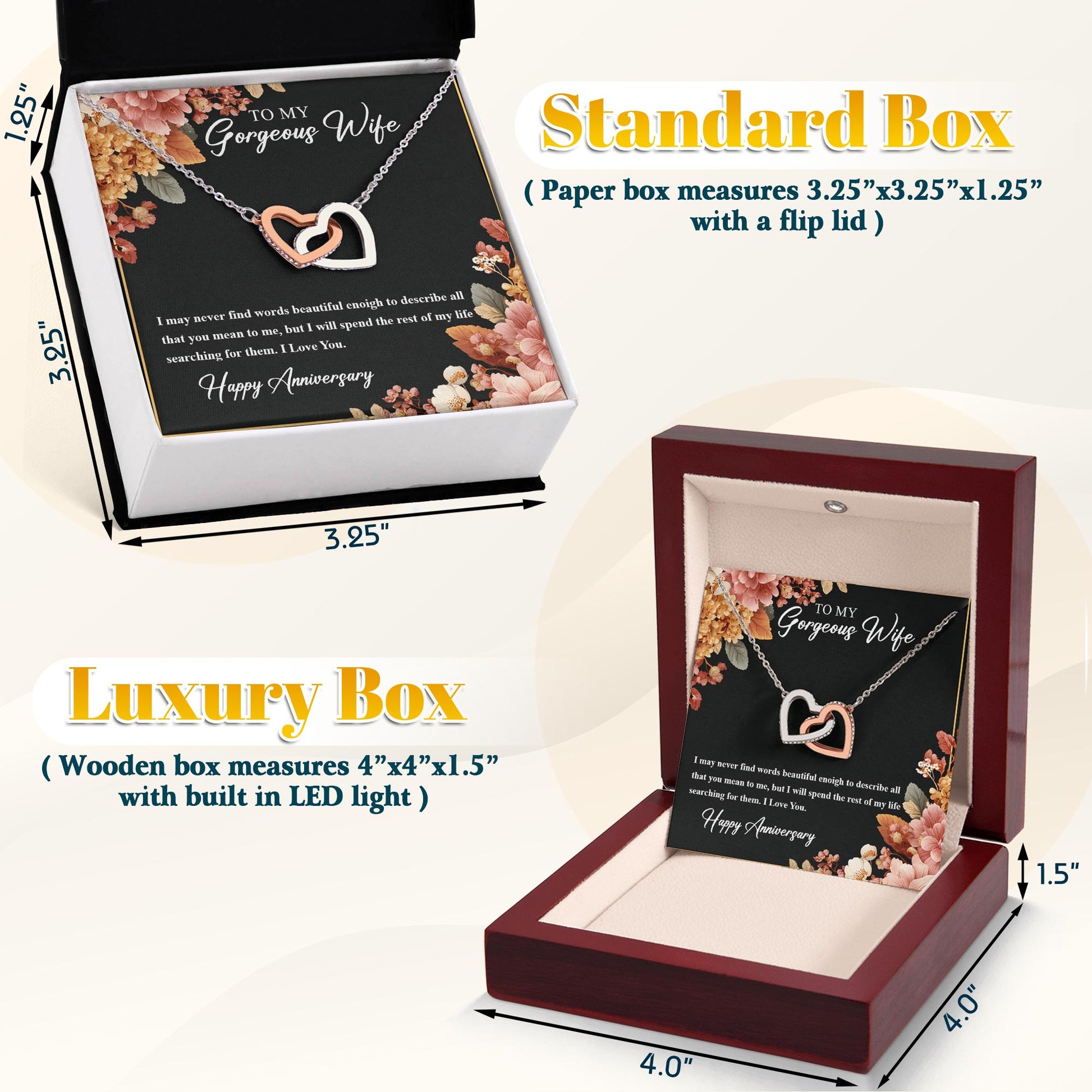 Netecom Personalized To My Gorgeous Wife Necklace from Husband, Custom Message Card with Name, Interlocking Heart Jewelry Gift for Couple, Anniversary, Wedding, Birthday, Christmas
