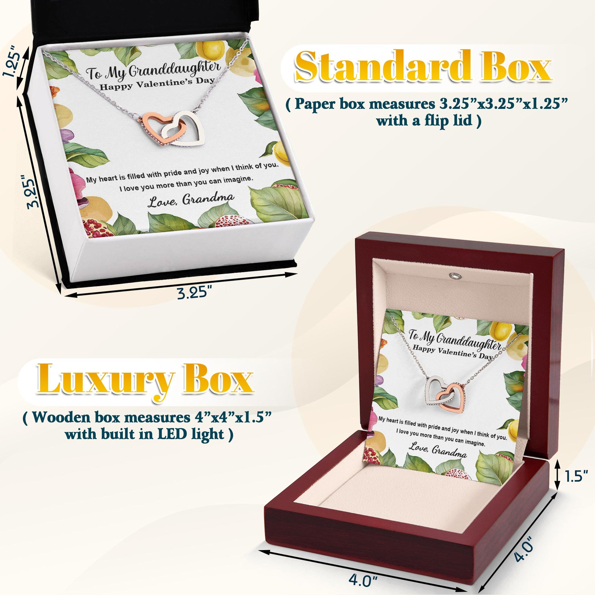 Netecom Personalized To My Granddaughter Necklace from Grandma, Interlocking Hearts Jewelry with Floral Card, Valentine’s Day Gift