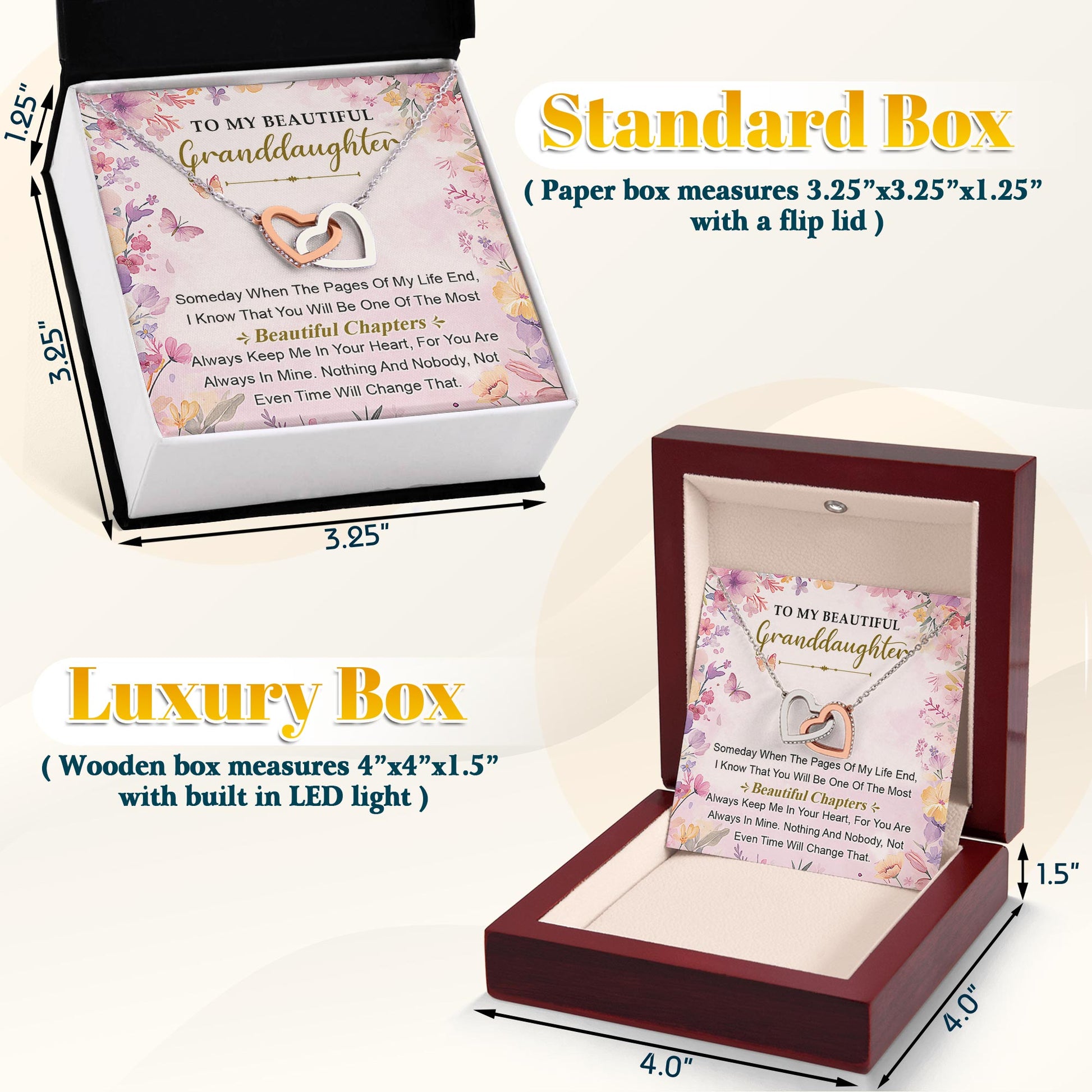 Netecom Personalized To My Granddaughter Necklace, Interlocking Hearts Jewelry with Butterfly Floral Card, Birthday, Graduation, Christmas Gift from Grandparents