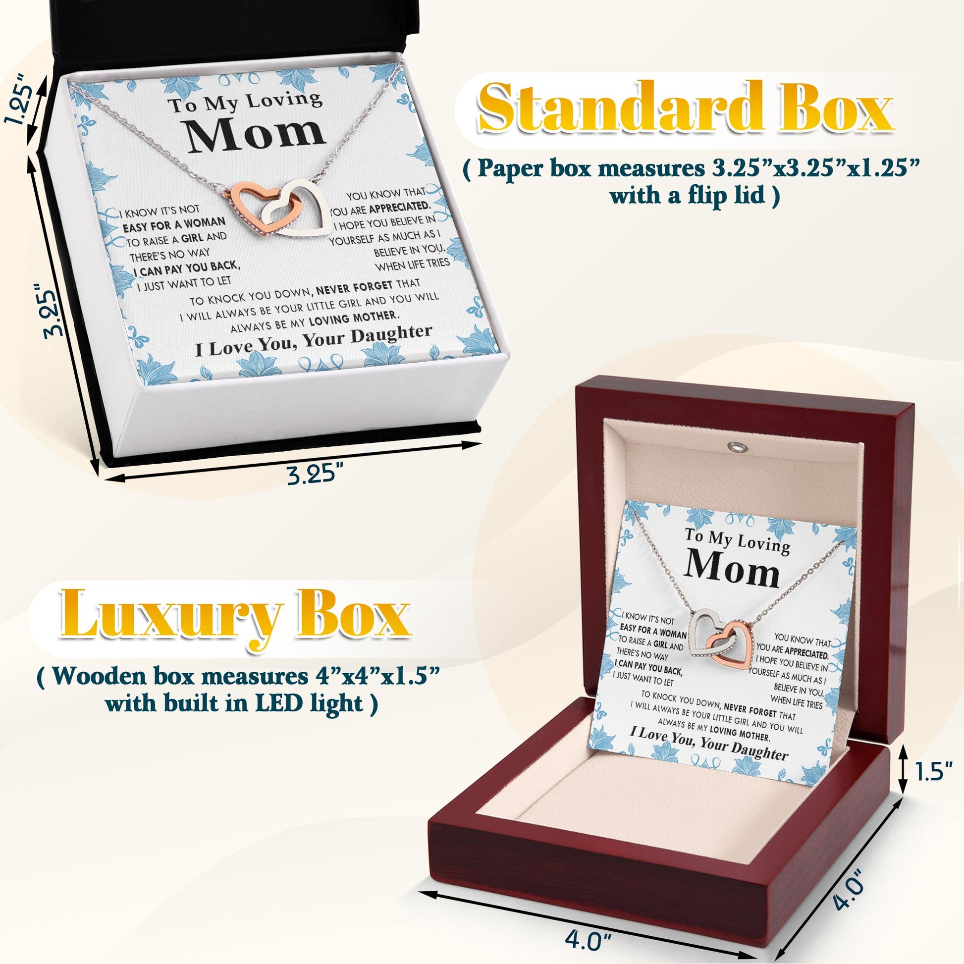 Netecom Personalized To My Loving Mom Necklace from Daughter, Custom Message Card with Name, Interlocking Heart Jewelry Gift for Birthday, Christmas