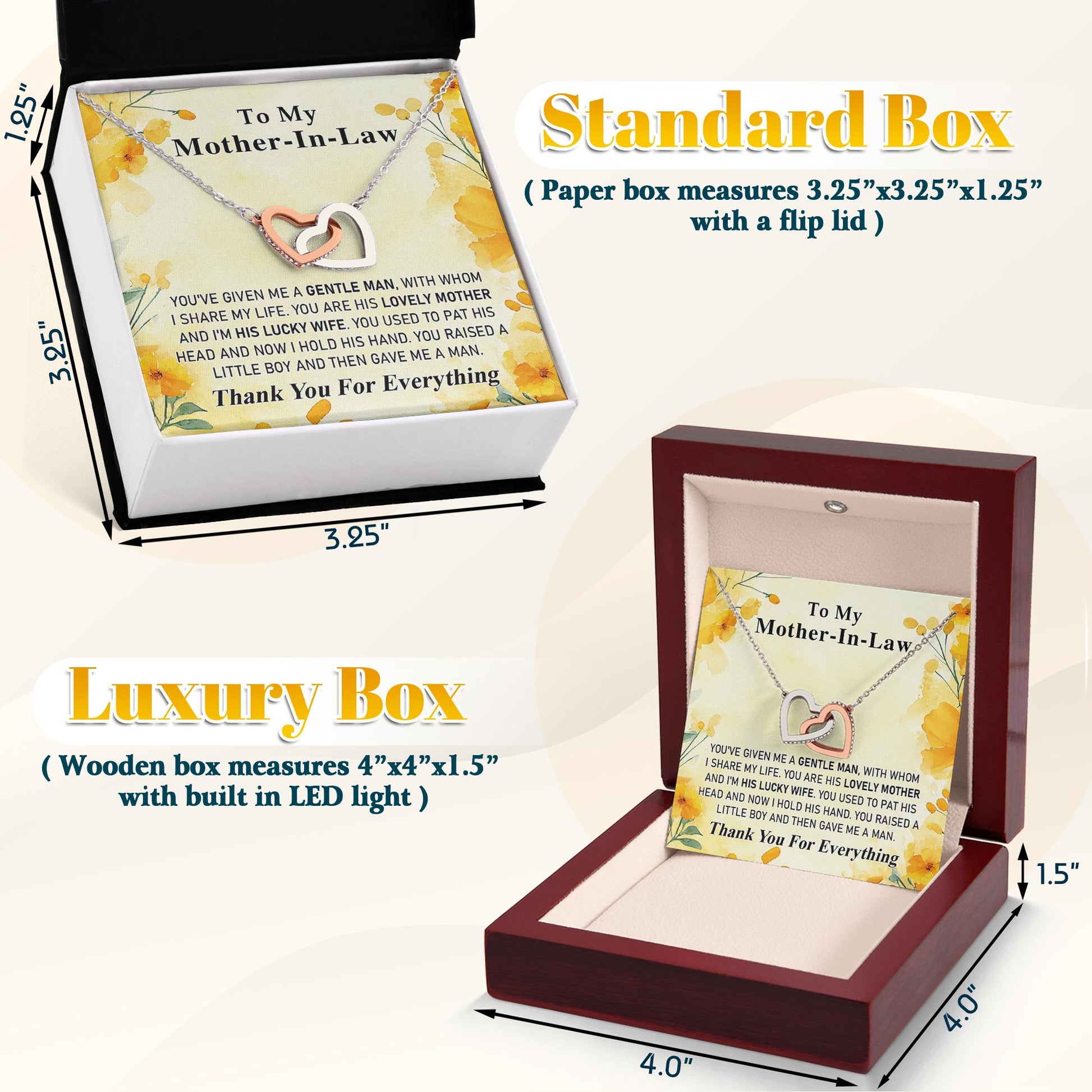 Netecom Personalized To My Mother-in-Law Necklace, Interlocking Hearts Jewelry with Floral Card, Wedding, Birthday, Christmas Gift from Daughter-in-Law