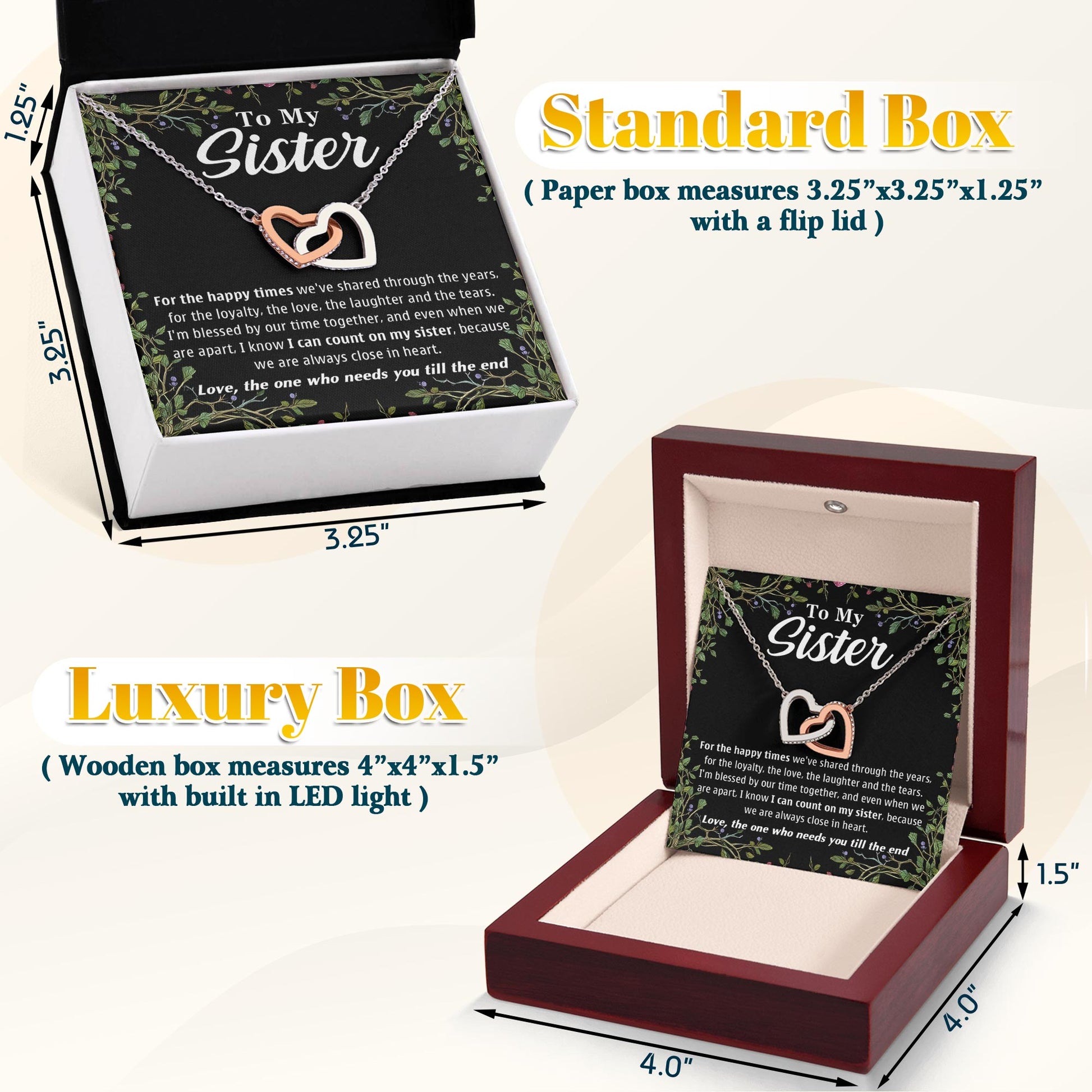 Netecom Personalized To My Sister Necklace, Custom Message Card with Name, We Are Always Close In Heart Interlocking Heart Jewelry Gift for Birthday, Christmas