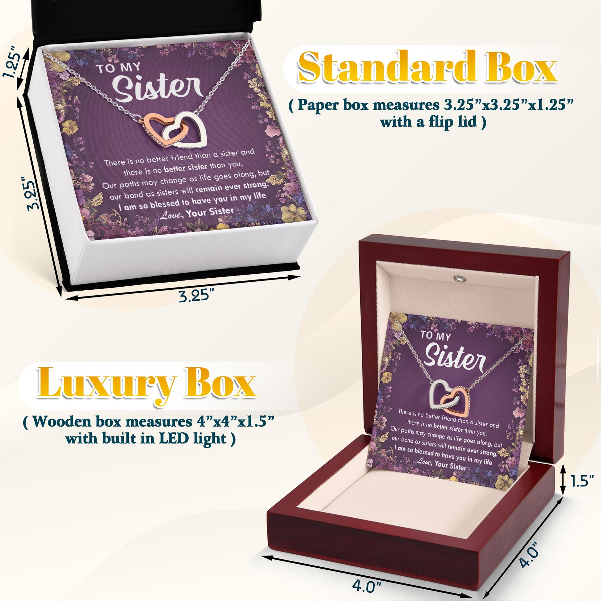 Netecom Personalized To My Sister Necklace from Sister, Interlocking Heart Jewelry with Floral Card, Birthday, Christmas, Graduation Gift for Sister
