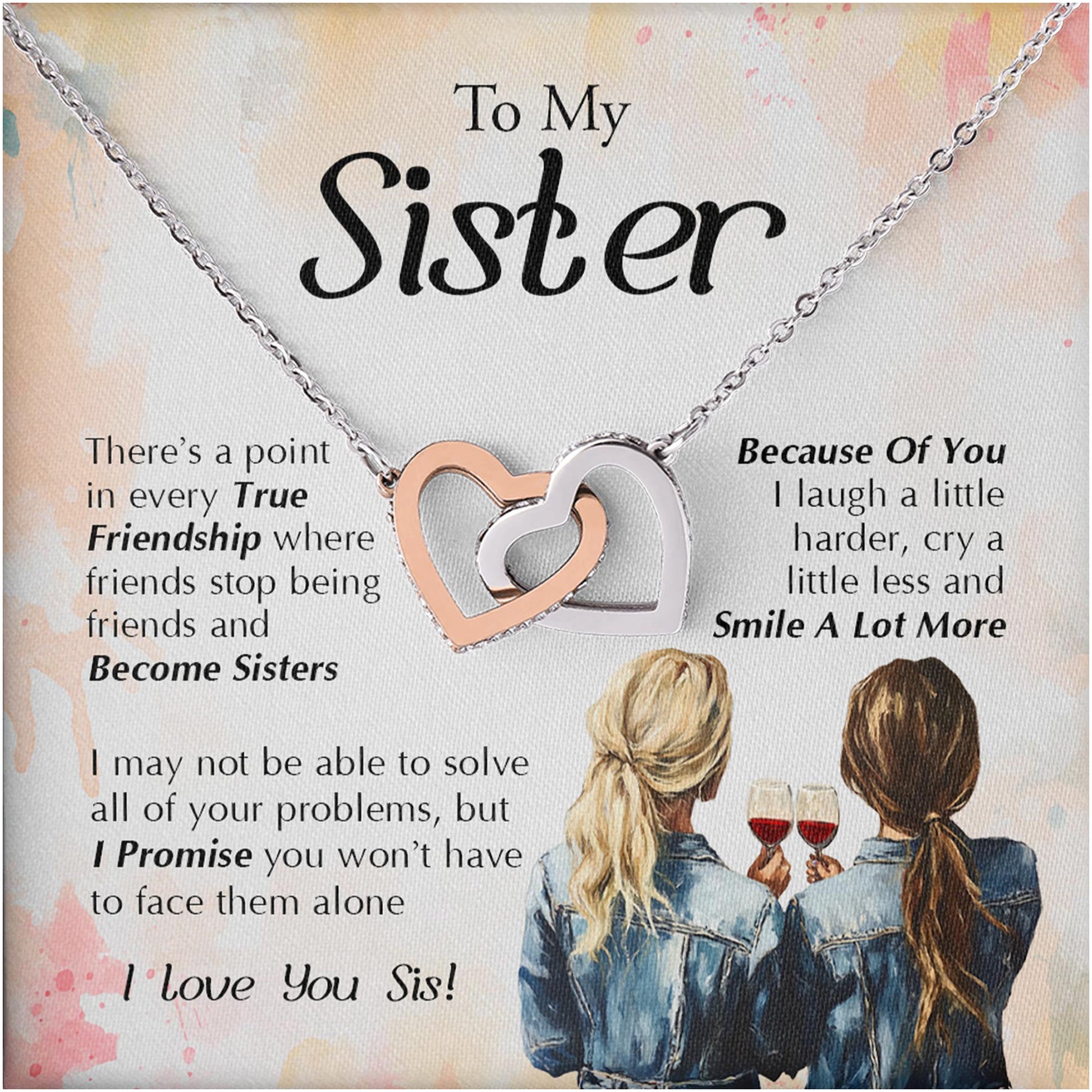 Netecom Personalized To My Sister Necklace from Sister, Interlocking Heart Jewelry with Floral Card, Birthday, Christmas, Graduation Gift for Sister