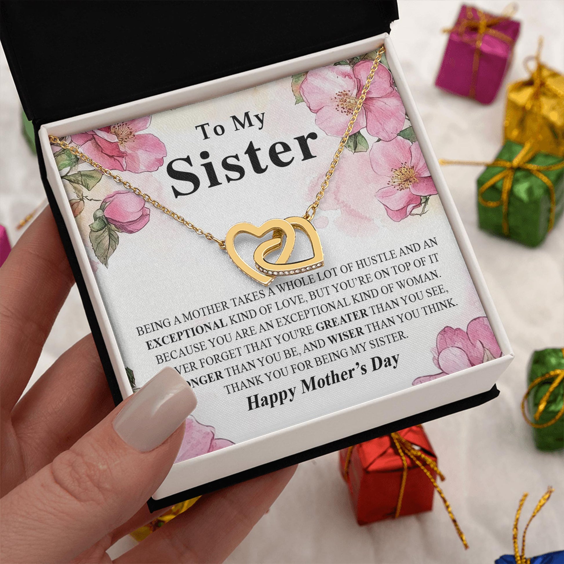 Netecom Personalized To My Sister Necklace, Interlocking Heart Jewelry with Floral Mother’s Day Card, Birthday or Christmas Gift for Sister