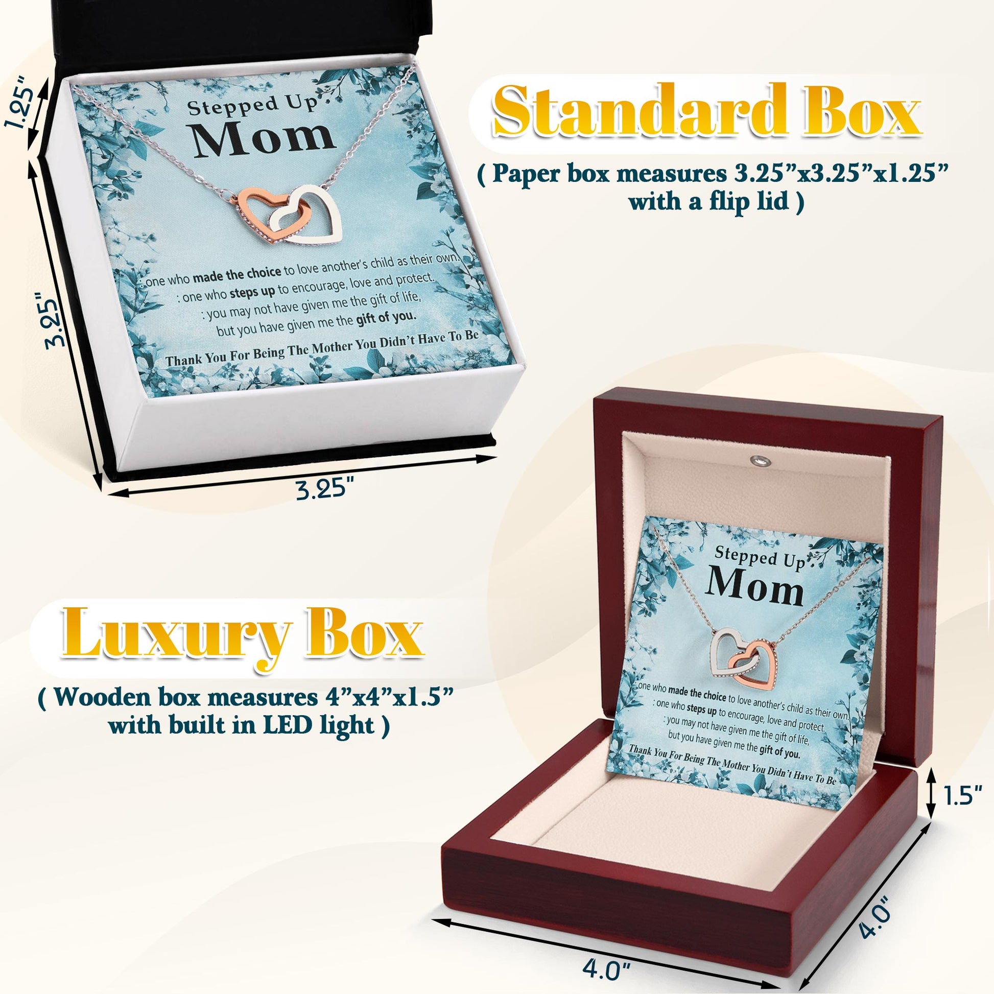 Netecom Personalized To My Stepped Up Mom Necklace from Daughter Son, Custom Message Card with Name, Interlocking Heart Jewelry Gift for Birthday, Christmas