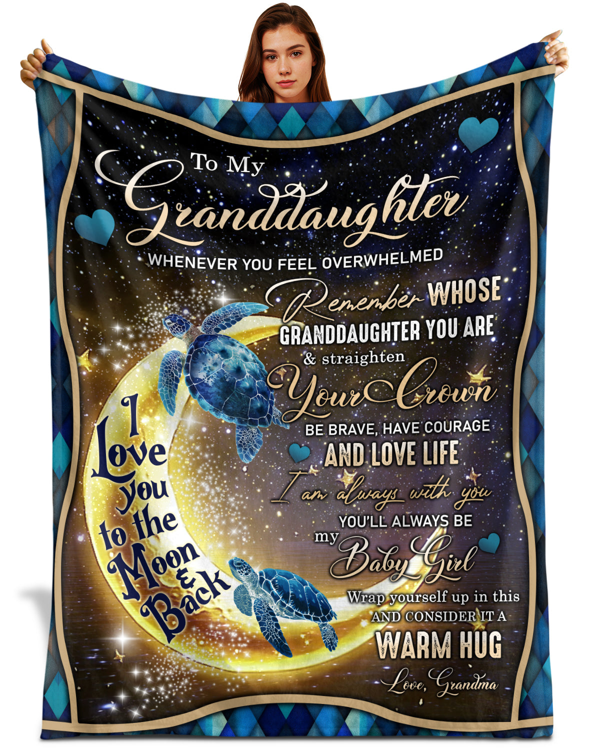 Netecom Personalized Turtle To My Granddaughter Blanket from Grandma, Custom Love Letter Throw Blanket for Couch, Bed or Sofa, Ultra Soft Warm Gift for Granddaughter’s Birthday and Christmas