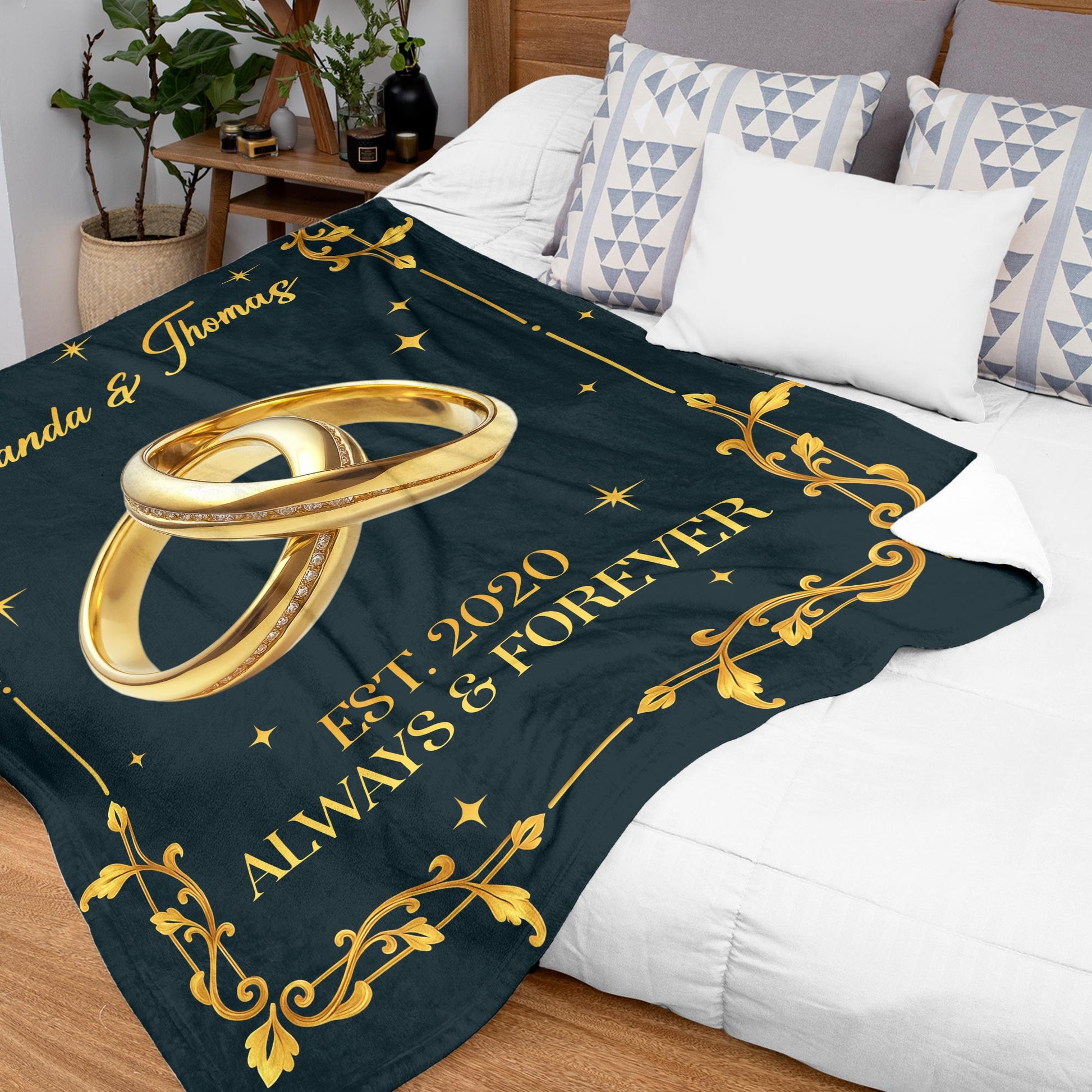 Netecom Personalized Wedding Anniversary Blanket for Couple, Custom Name and Year Throw Blanket with Gold Rings for Couch, Bed or Sofa, Romantic Gift for Husband & Wife, Engagement or Valentine’s Day