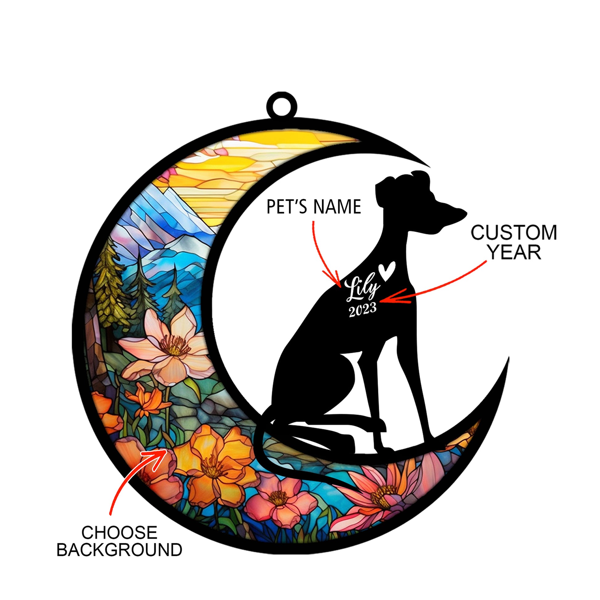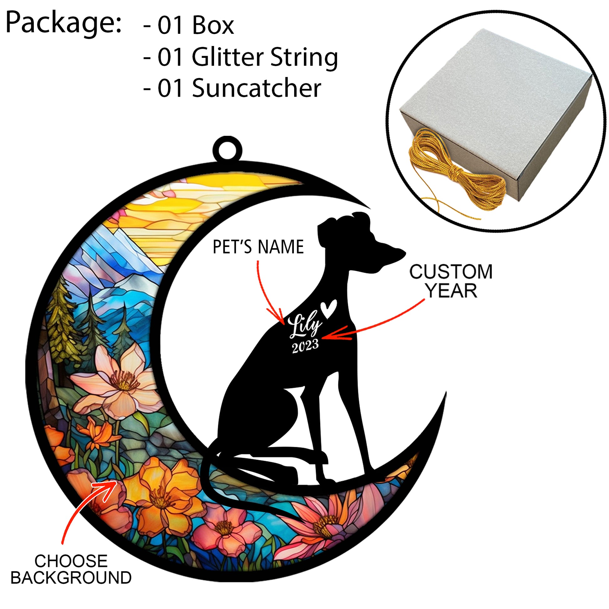 Netecom Personalized Whippet Memorial Suncatcher - Beagle Christmas Ornament with Name & Date - Dog Memorial Ornament - Pet Loss Sympathy Gift - Stained Glass Light Catcher