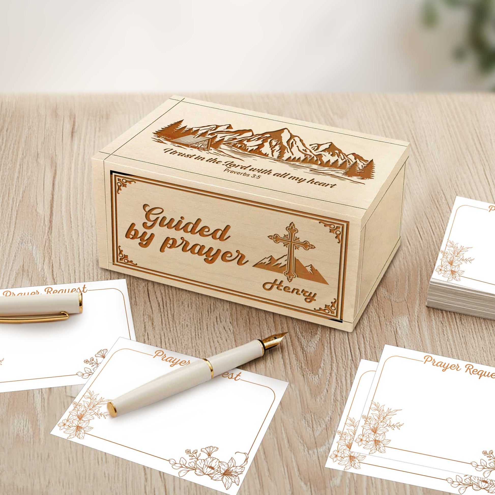 This personalized wooden prayer box is thoughtfully designed to support daily prayer, quiet reflection, and moments of spiritual connection. With its clean, faith-inspired engraved design and natural wood finish, it provides a peaceful place to write down prayers, intentions, gratitude, and reflections—keeping faith close every day.