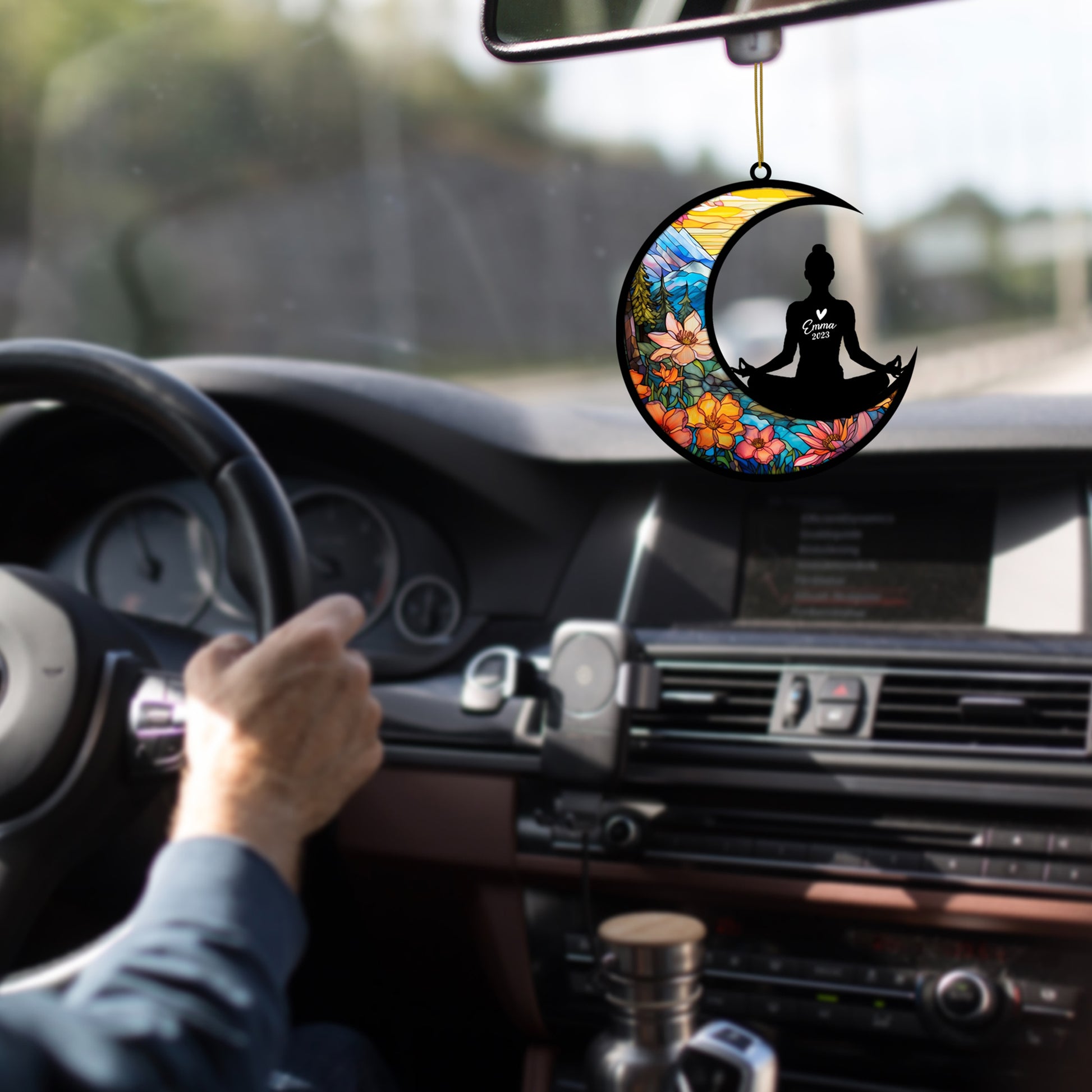 Netecom Personalized Yoga Suncatcher - Meditation & Namaste Christmas Tree Ornament - Custom Yoga Pendant for Car, Window & Home - Fitness Gift for Yoga Lovers