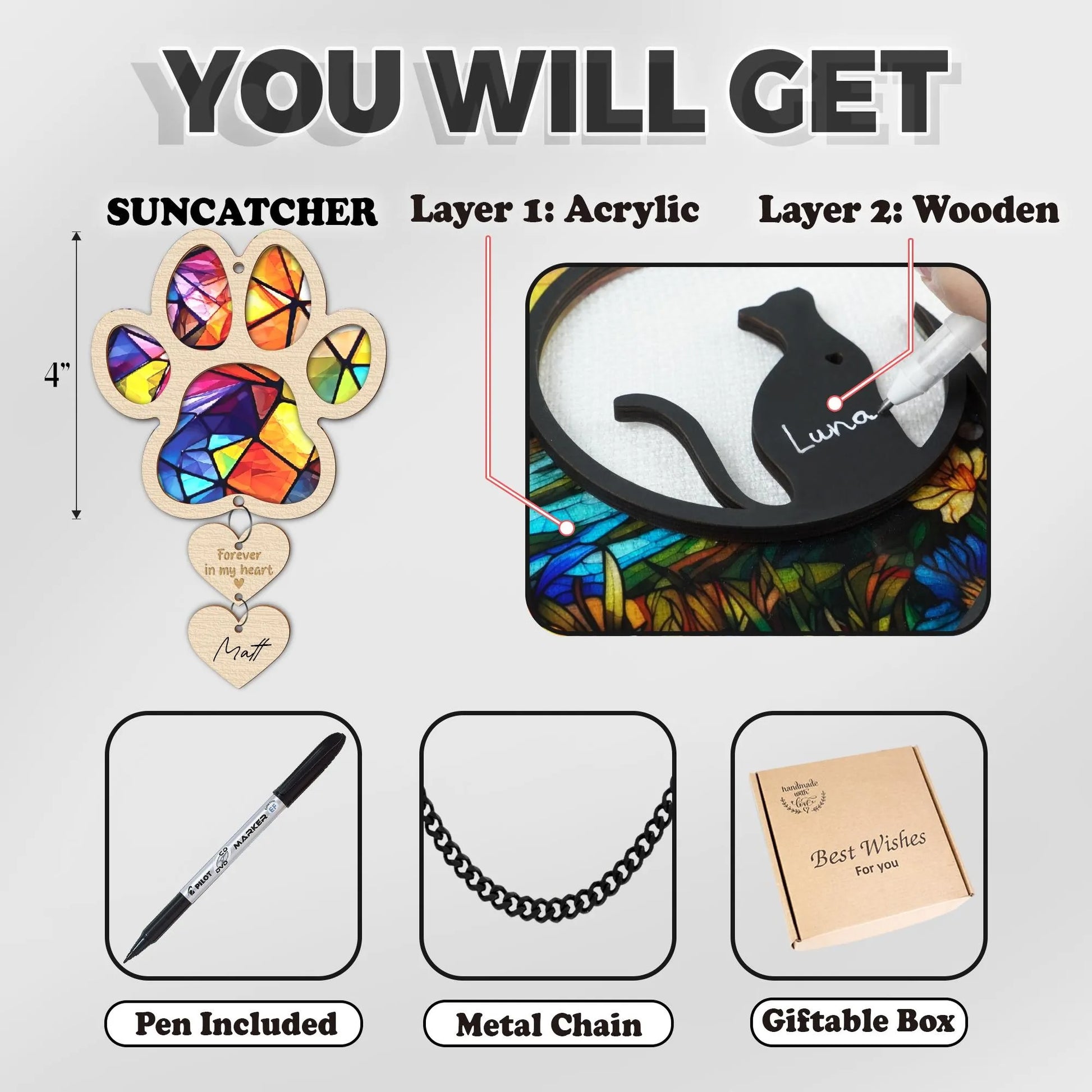Netecom Pet Paw Christmas Ornament, Pet Memorial Suncatcher, Sympathy Gift for Pet Loss, Pet Rainbow Bridge Tribute, Personalized Pet Name Gift