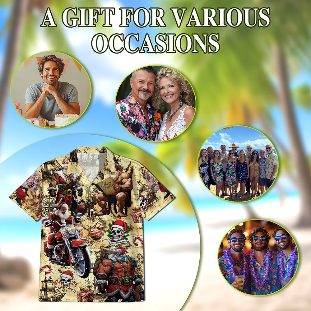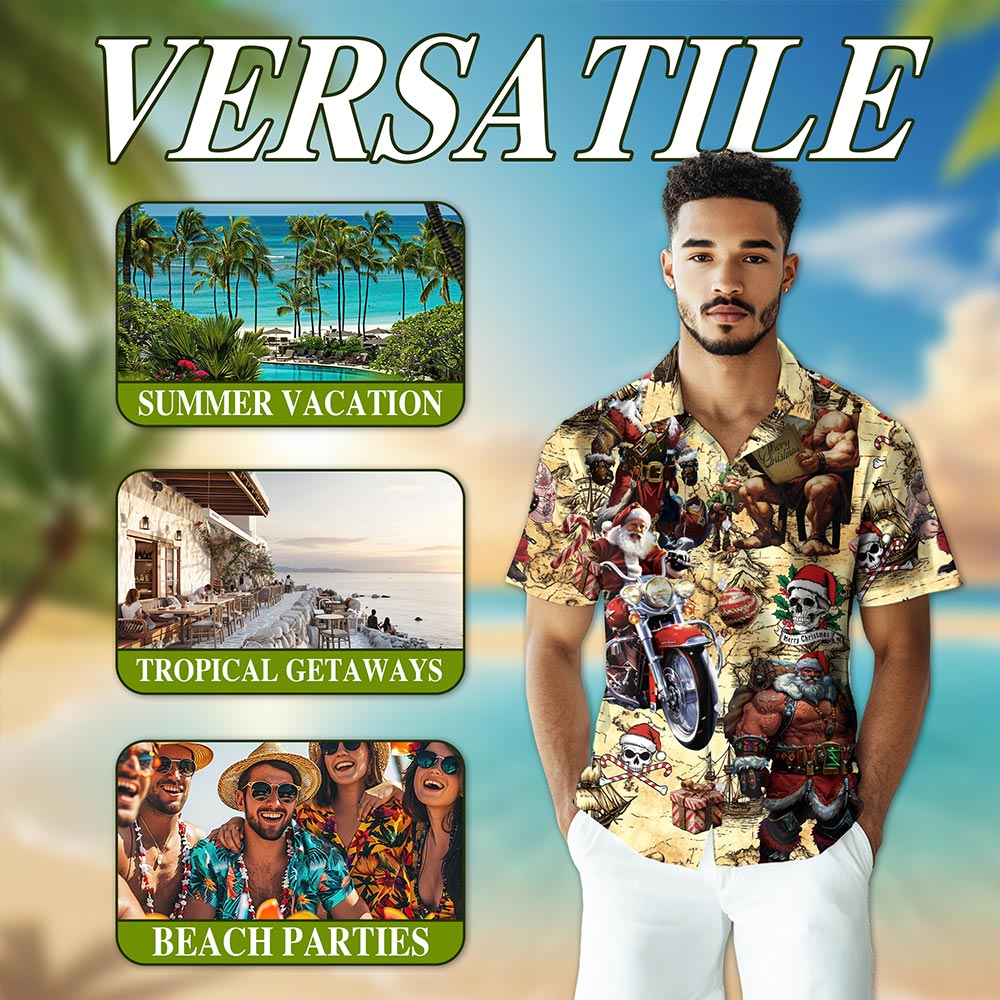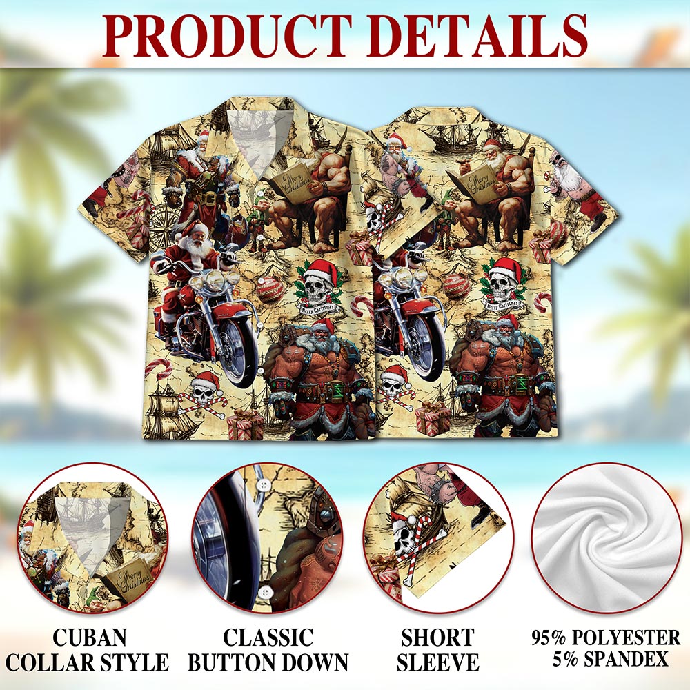 Netecom Pirate Santa Claus Hawaiian Shirt for Men, Funny Christmas Button Down Summer Aloha Beach Short Sleeve Shirts, S-5XL