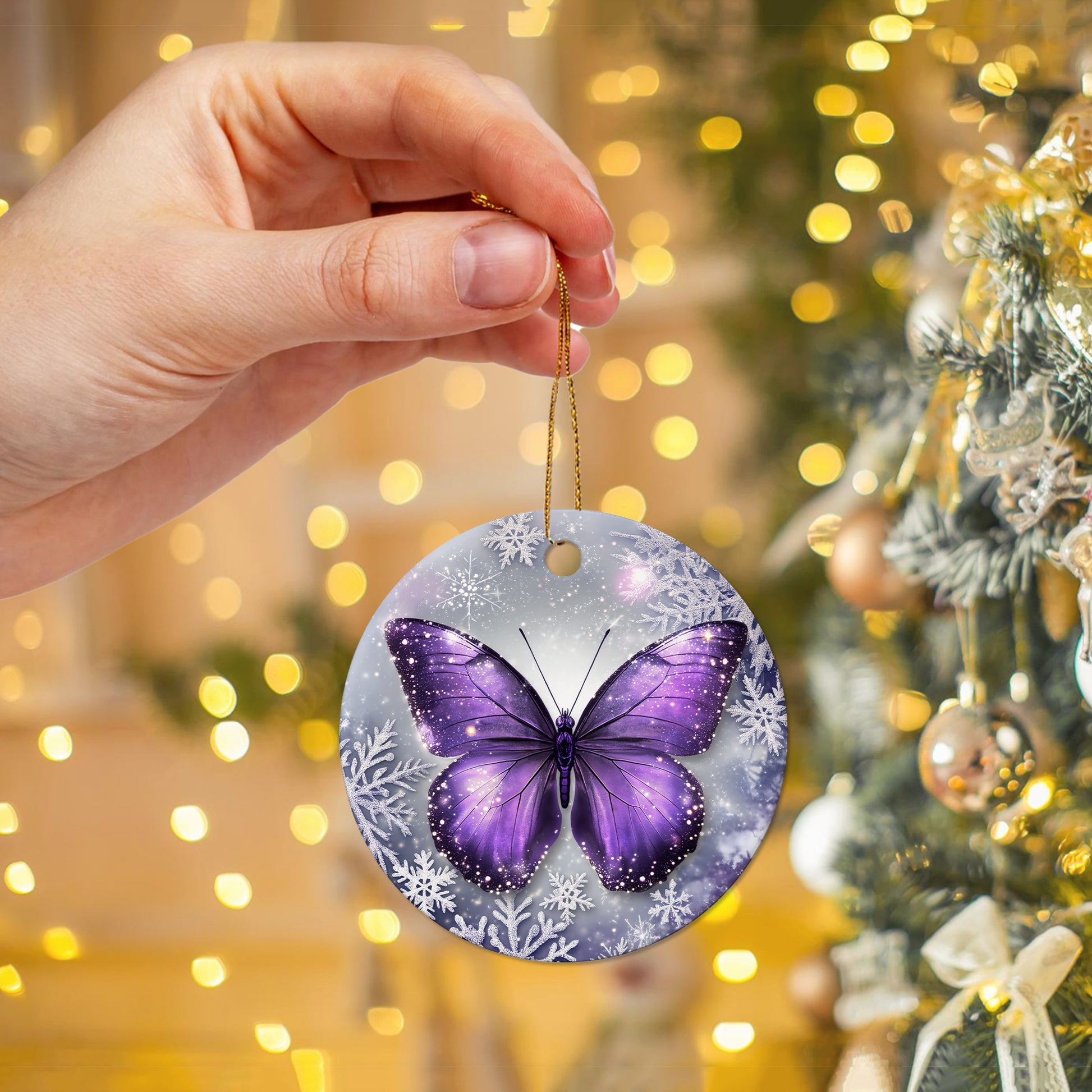 Netecom Purple Butterfly Christmas Ornaments, Ceramic Snowflake Keepsake Ornament for Christmas Tree Decorations, Butterfly Lover Gift, Gifts for Holiday, Party, Home Decor