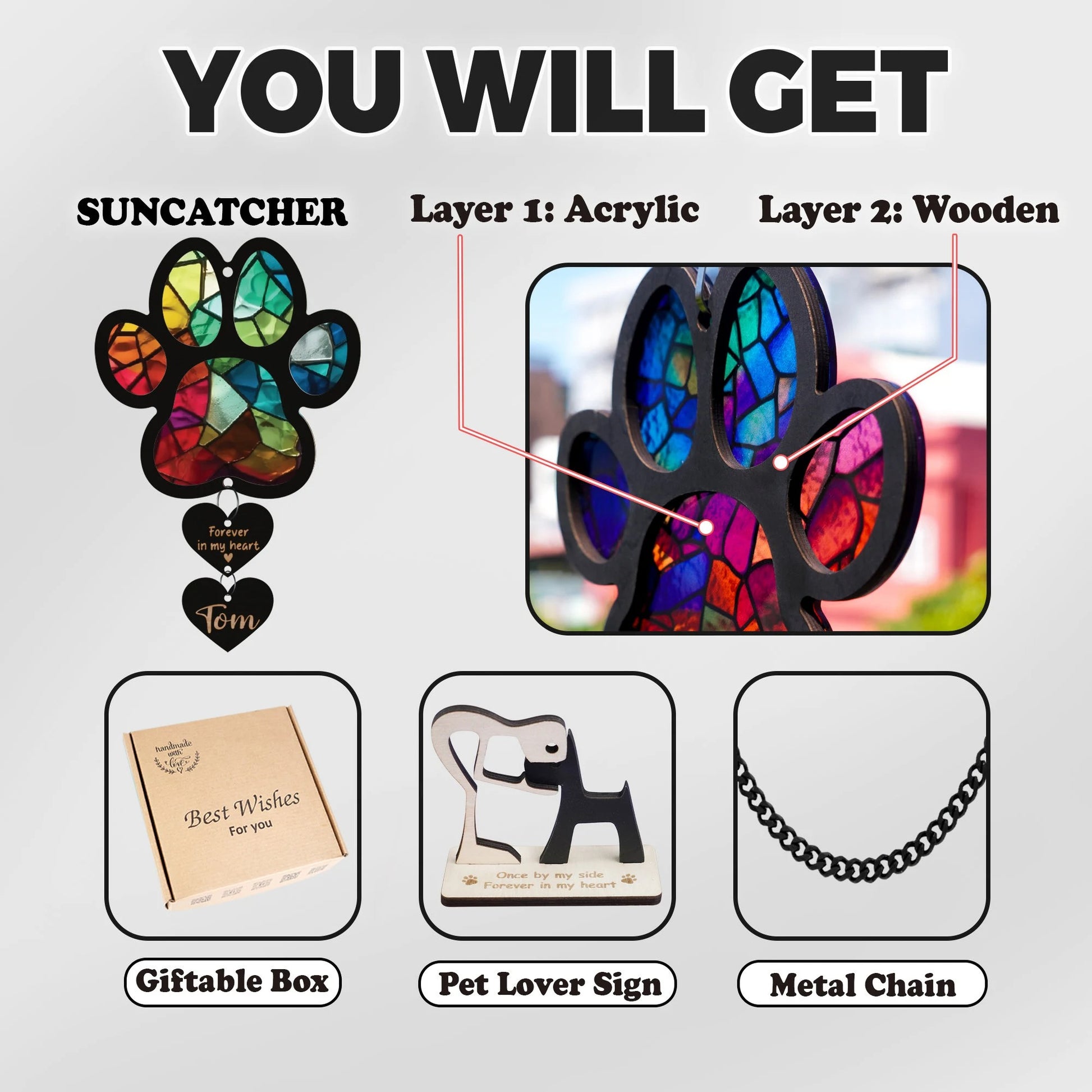 🌈 Rainbow Bridge Pet Paw Suncatcher – Dog Loss Sympathy Gift