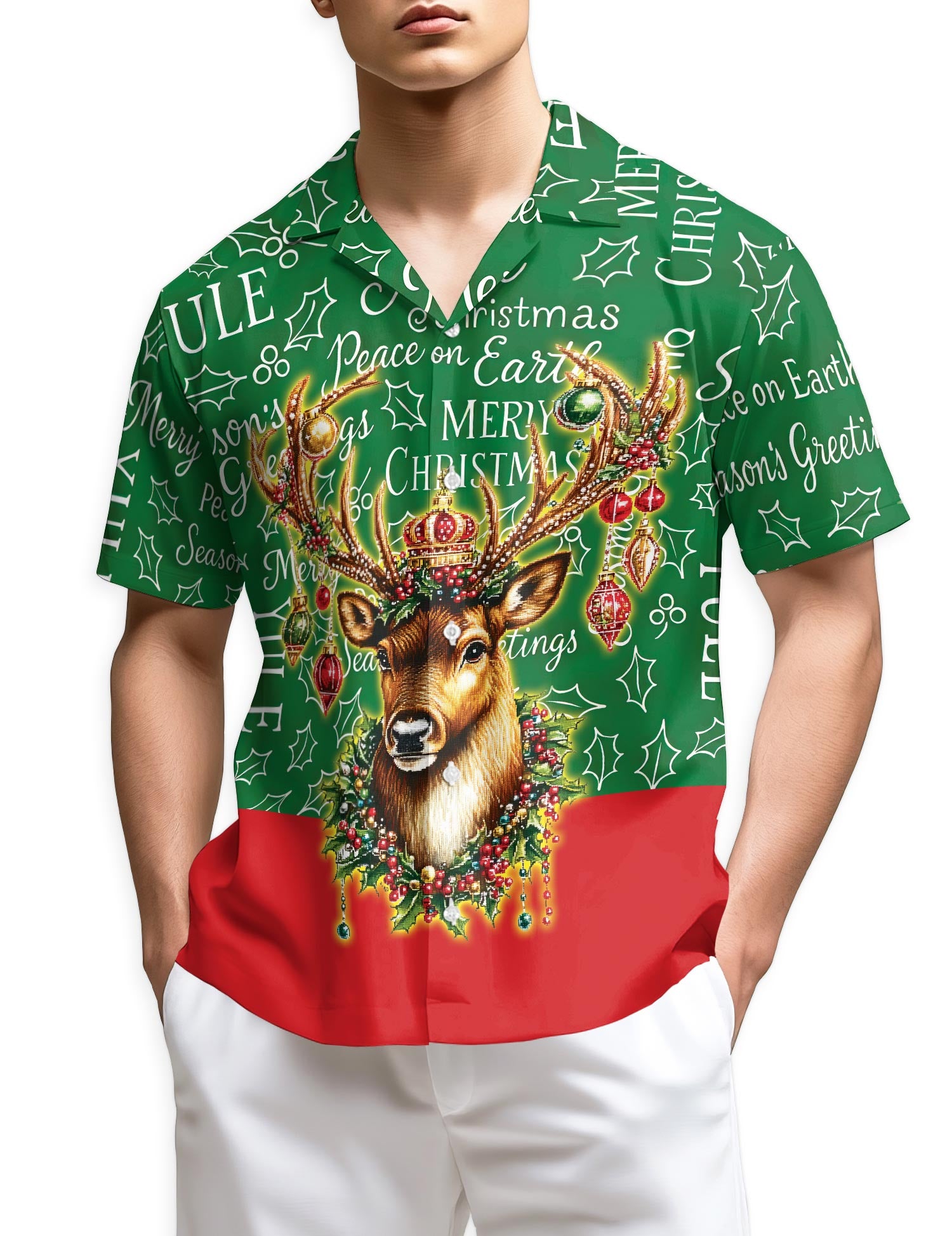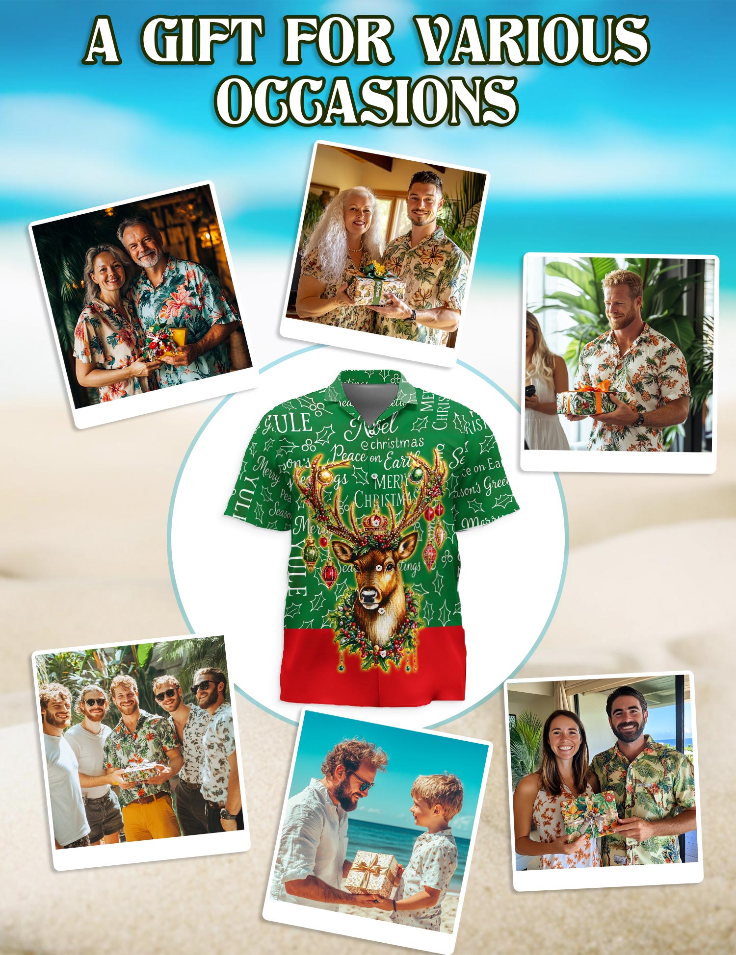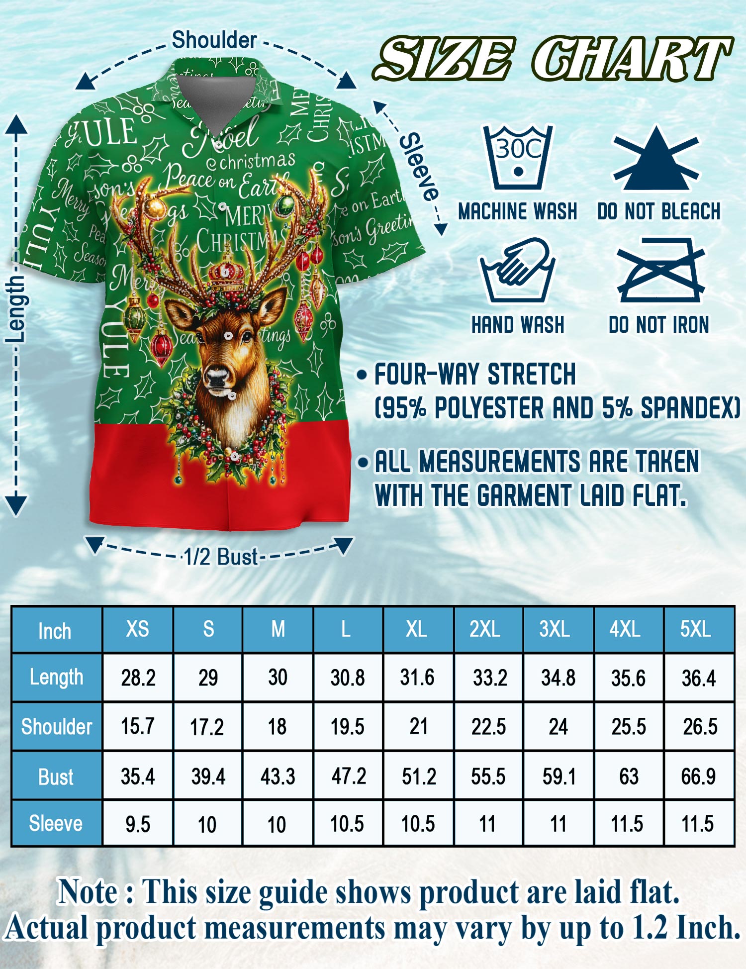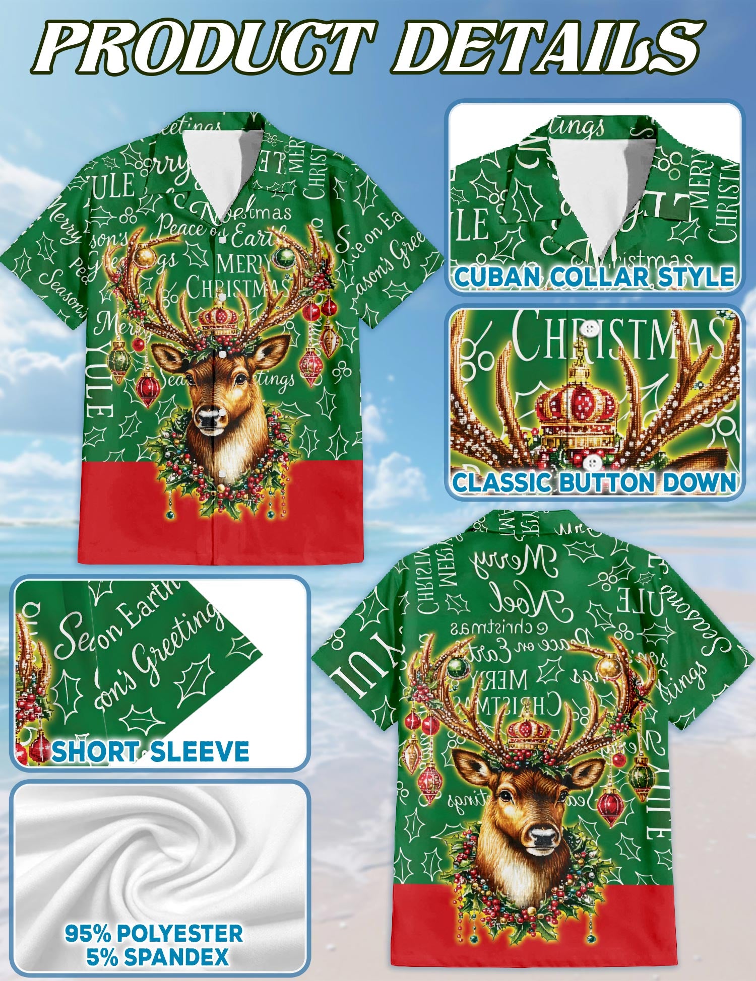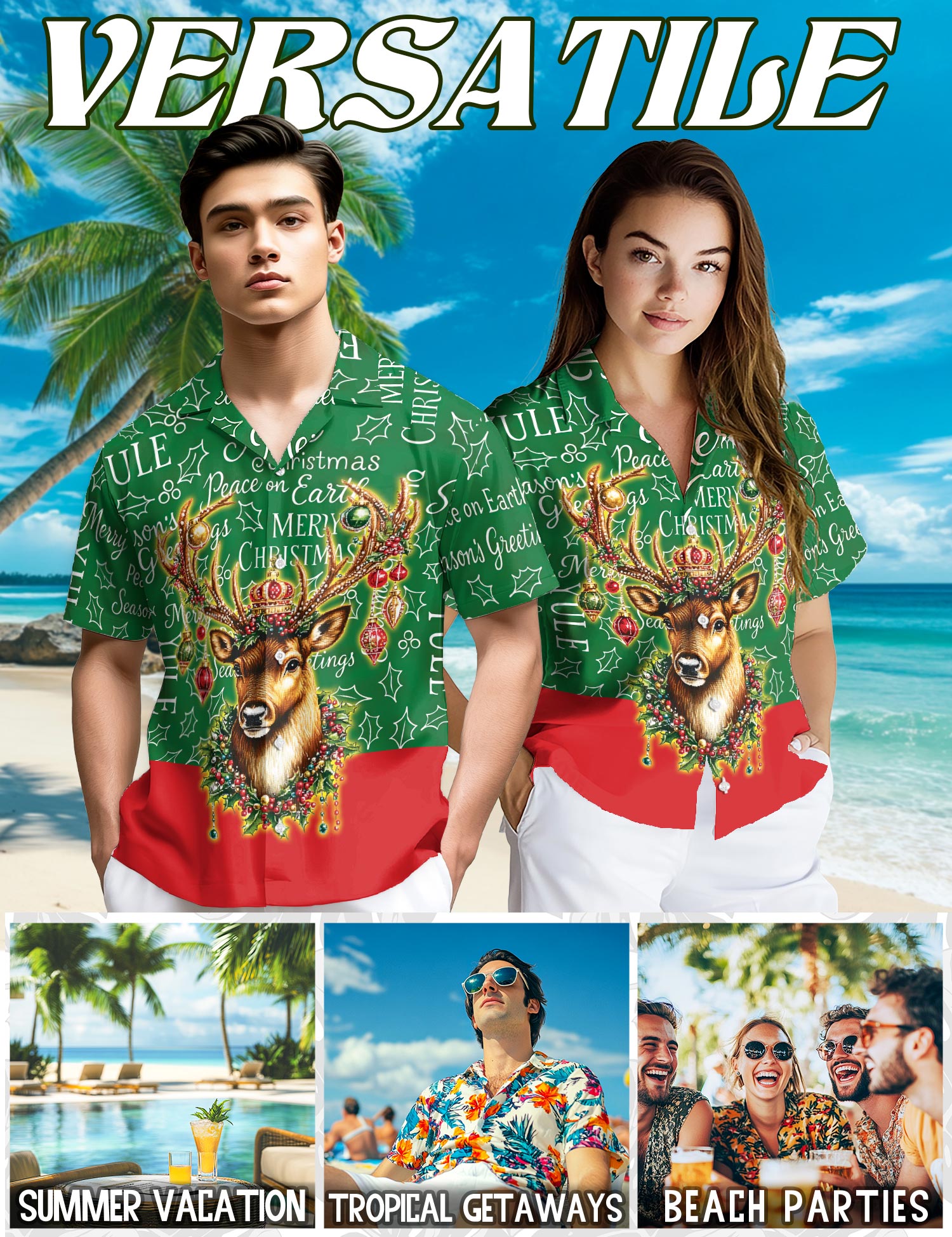 Netecom Reindeer Christmas Hawaiian Shirt for Men Women, Funny Holiday Button Down Summer Beach Short Sleeve Shirts, S-5XL