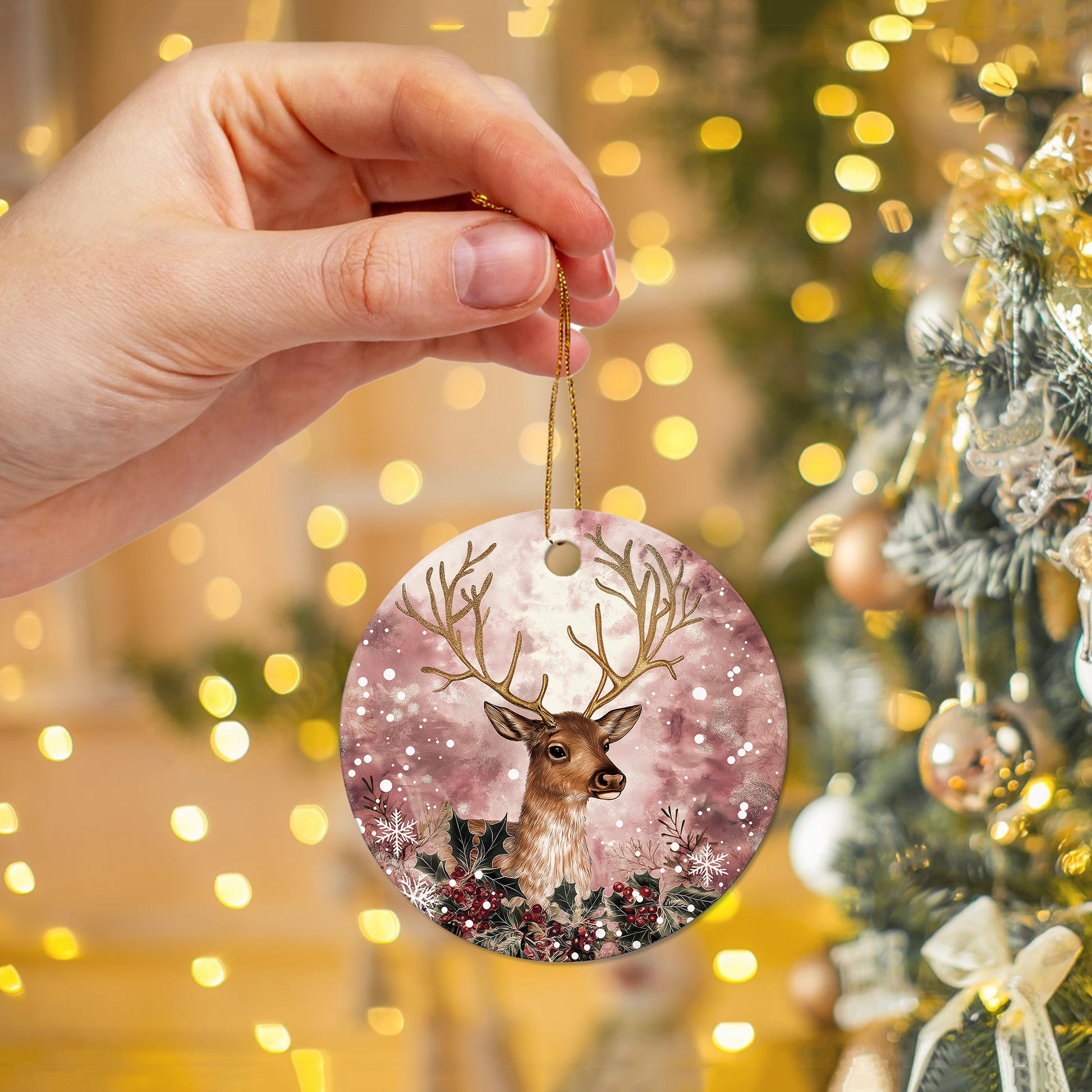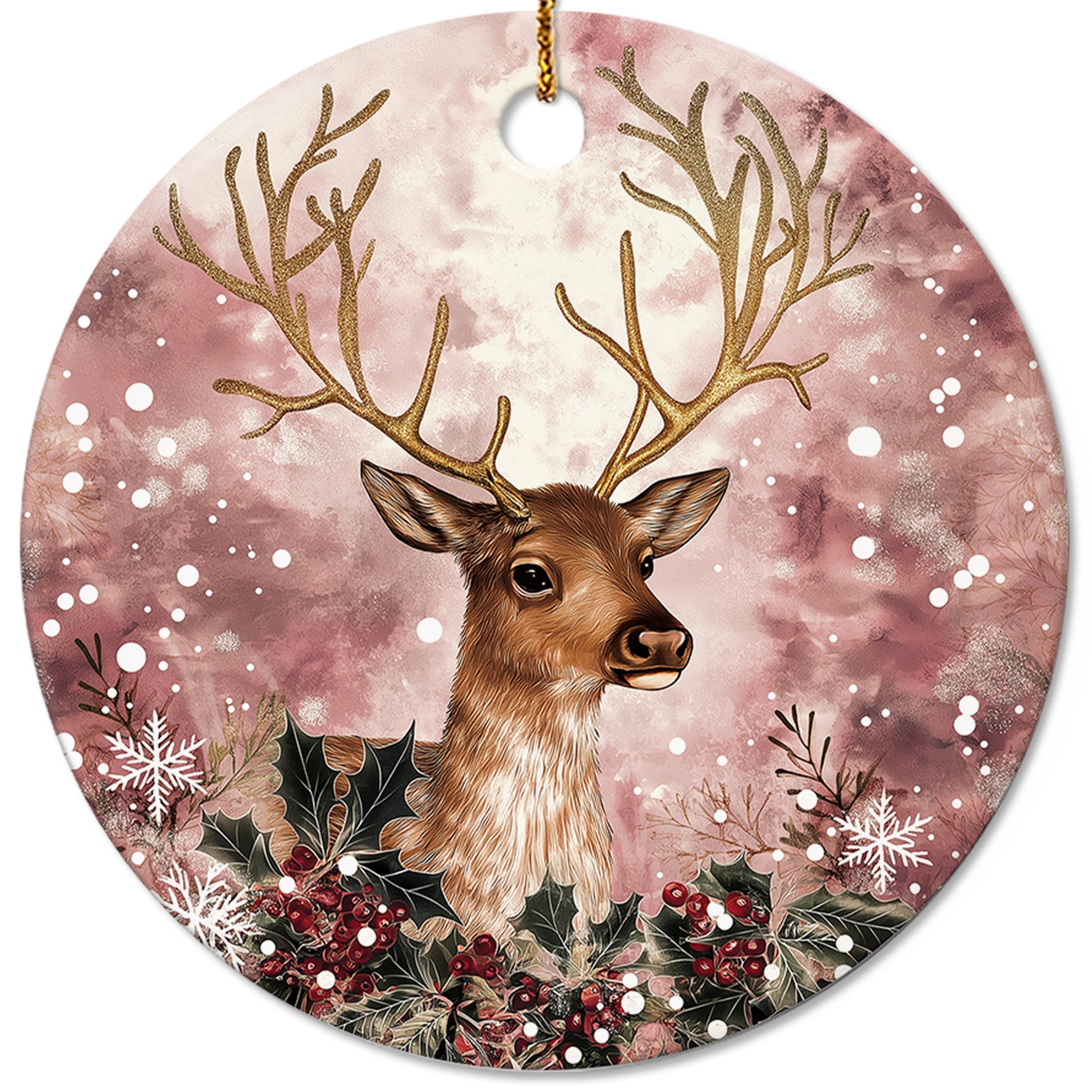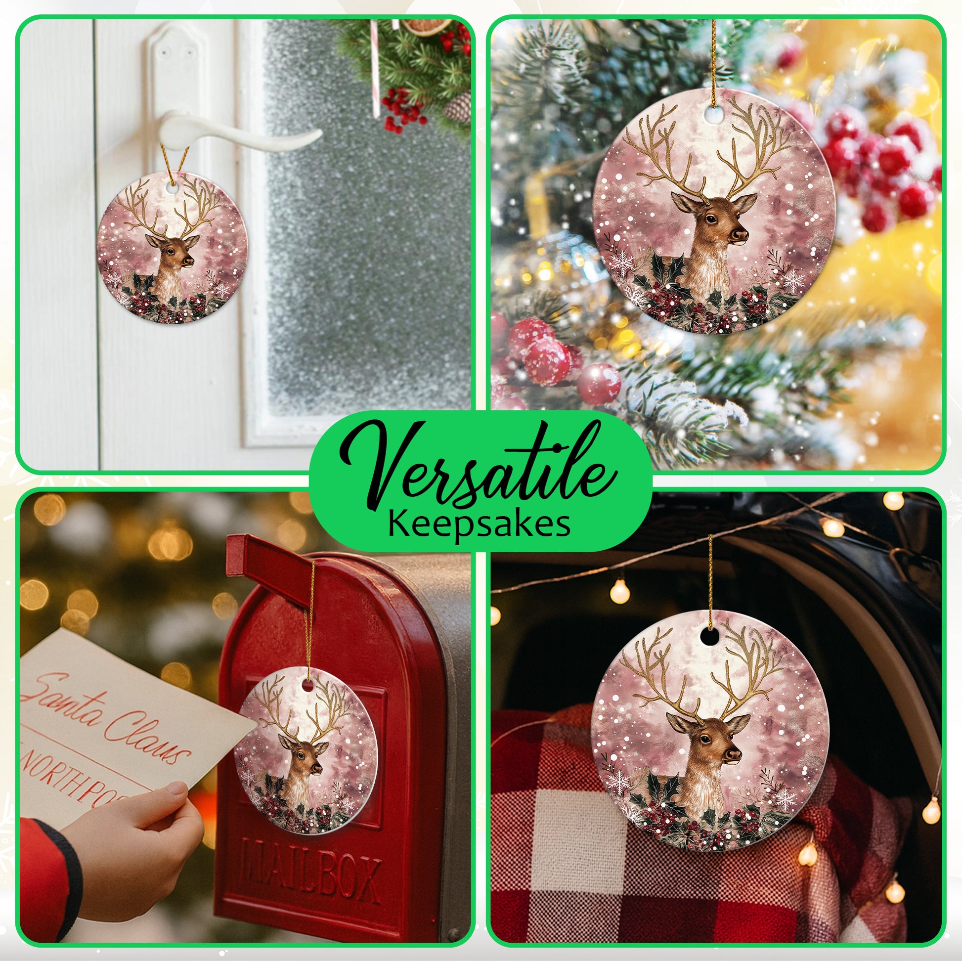 Netecom Reindeer Pink Ornament, Ceramic Deer and Flowers Keepsake Ornament for Xmas Tree Decorations, Reindeer Lover Gift, Gifts for Holiday, Party, Home Decor