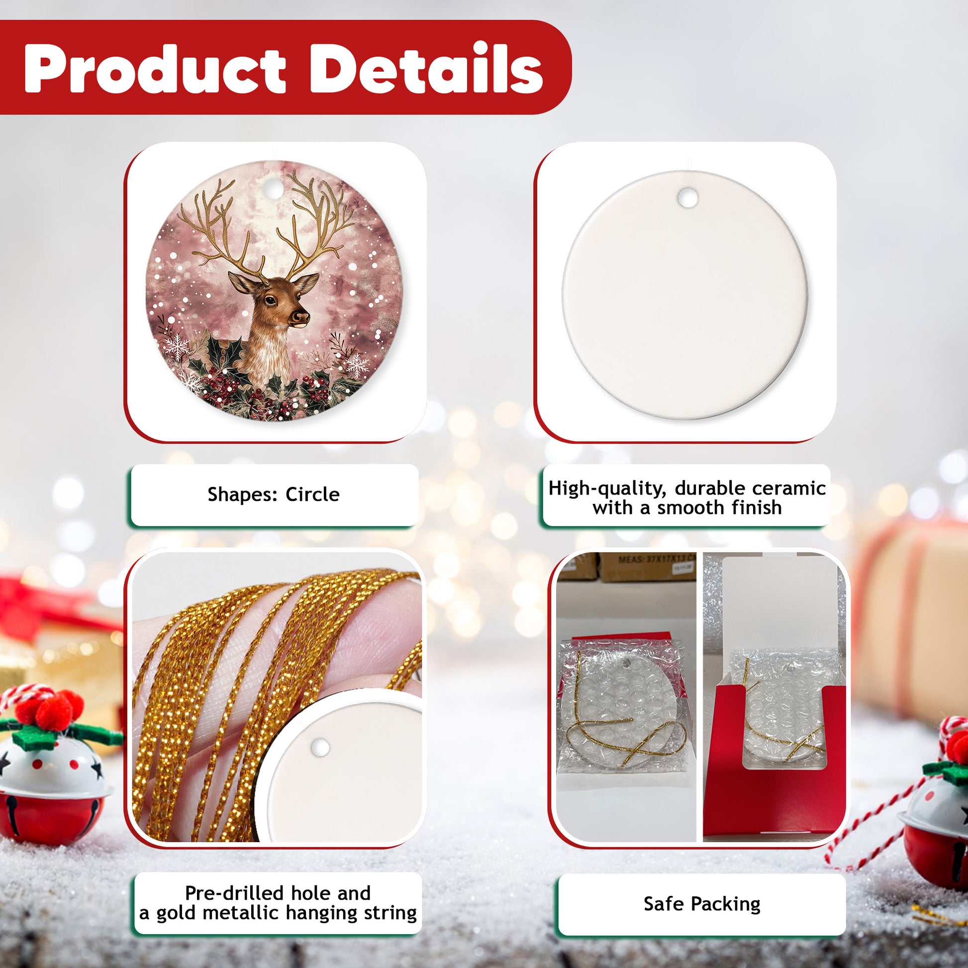 HIGH-QUALITY CERAMIC: Crafted from durable ceramic with a smooth finish, this ornament measures about 3.3 x 3.3 inches—perfect for display or gifting. The advanced printing delivers bright, crisp, high-definition designs that resist fading, offering a more elegant look compared to wooden decorations.