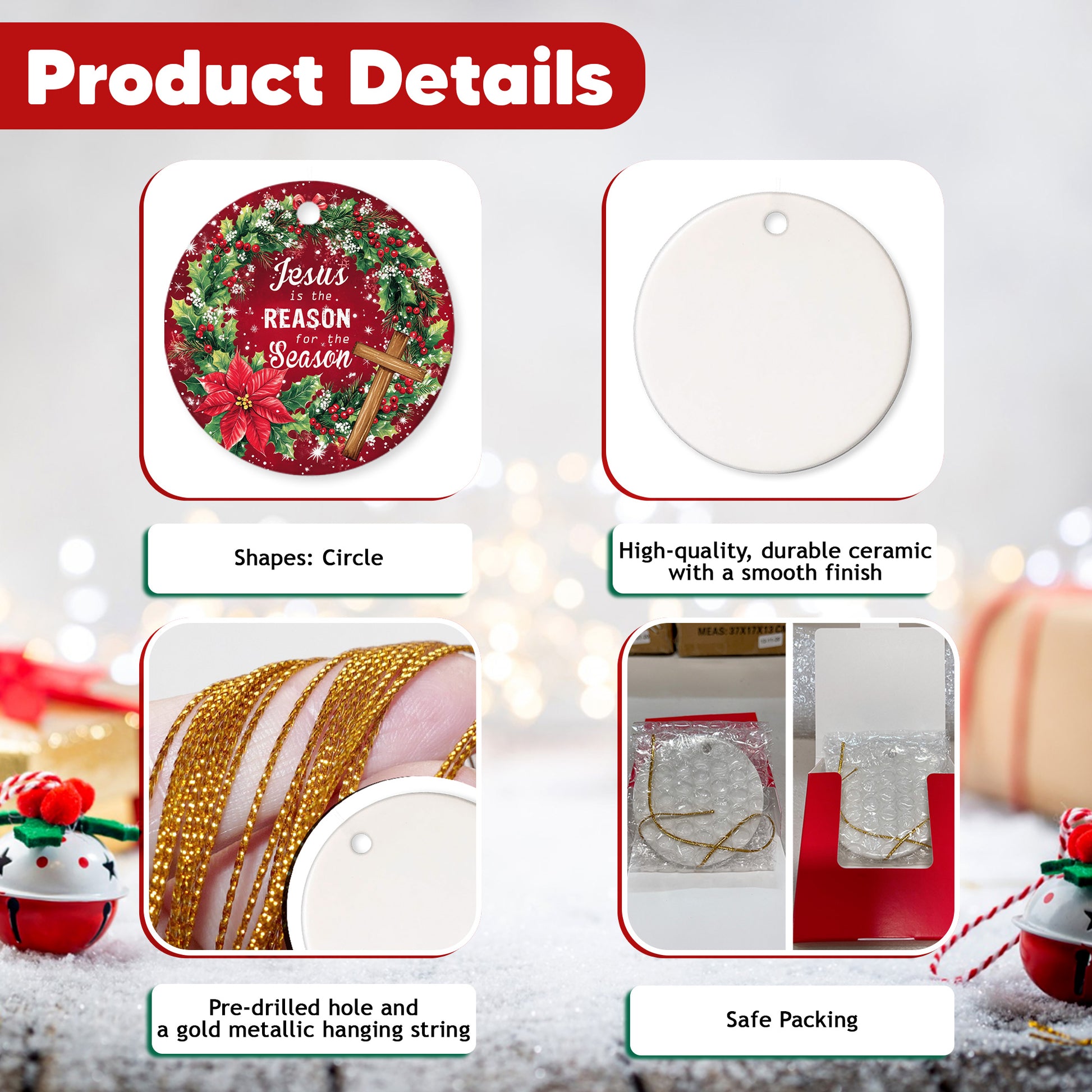 Netecom Religious Christmas Ornament, Jesus is the Reason for the Season Ceramic Ornament for Xmas Tree Hanging Decorations Gift, Inspirational Gifts for Christian, Holiday Party Present