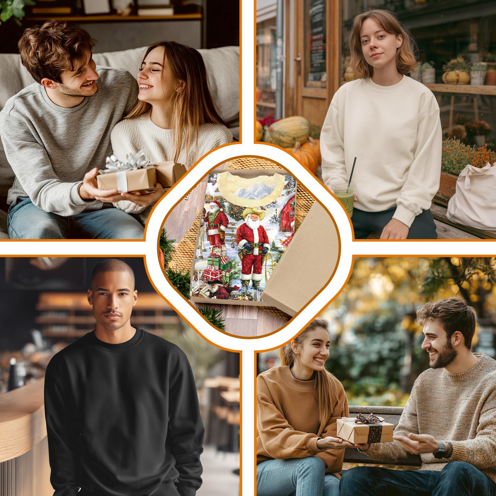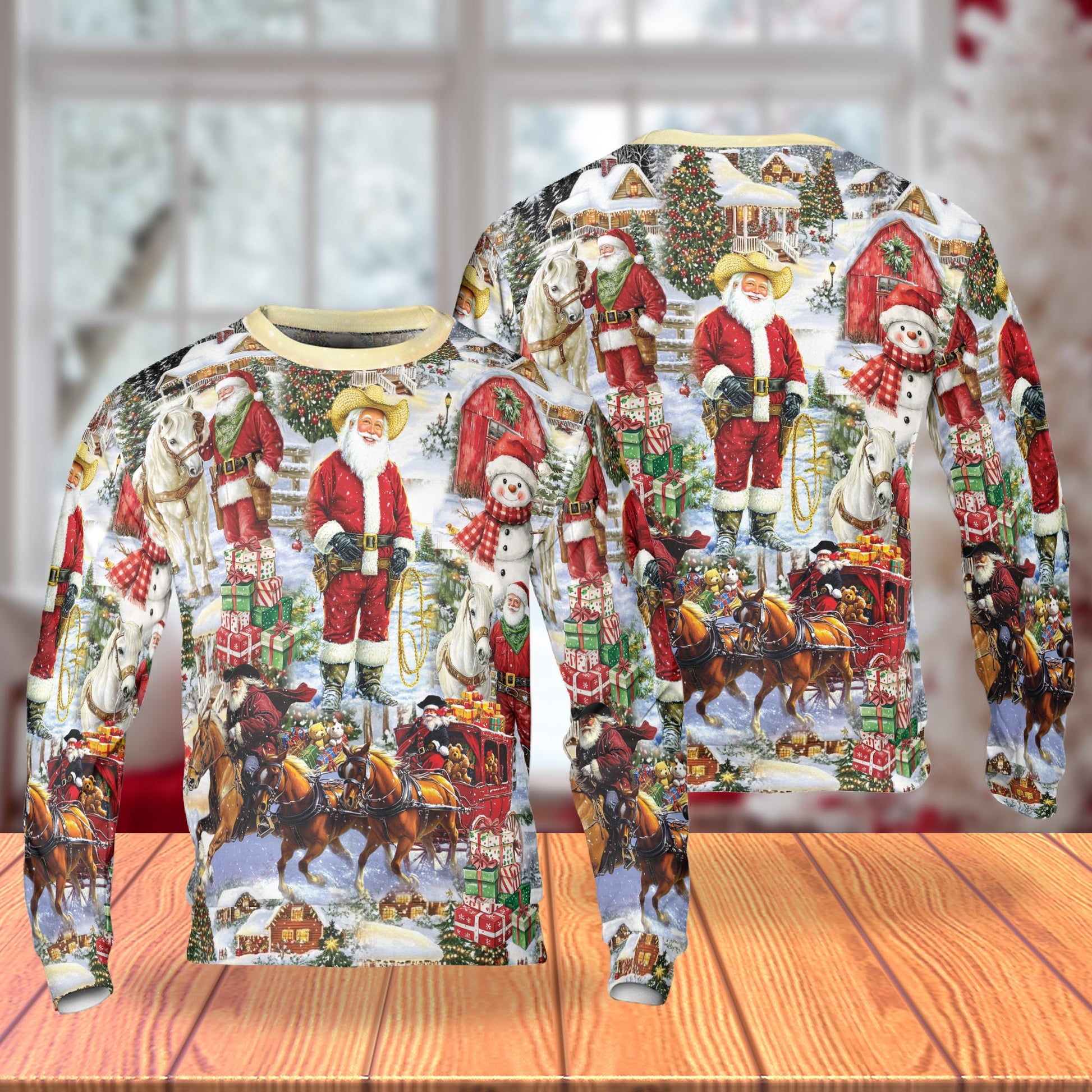Netecom Retro Cowboy Santa Christmas Sweatshirt 3D All Over Print – Unisex Crewneck Pullover, Lightweight Fleece Casual Outfit