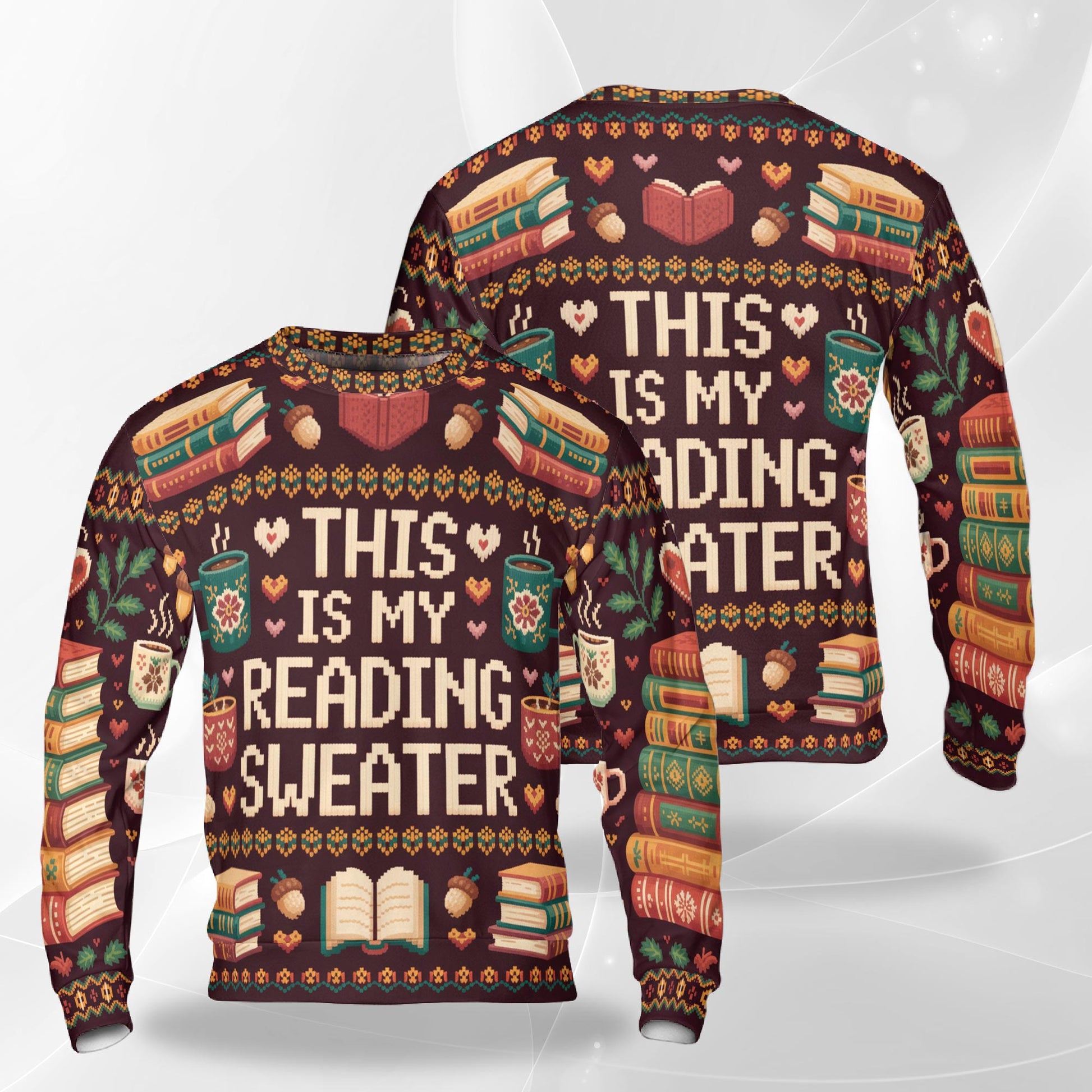 Netecom Retro Ugly Christmas Book Coffee Sweatshirt 3D All Over Print, Literary Gift Idea, Crewneck Pullover for Costume Party