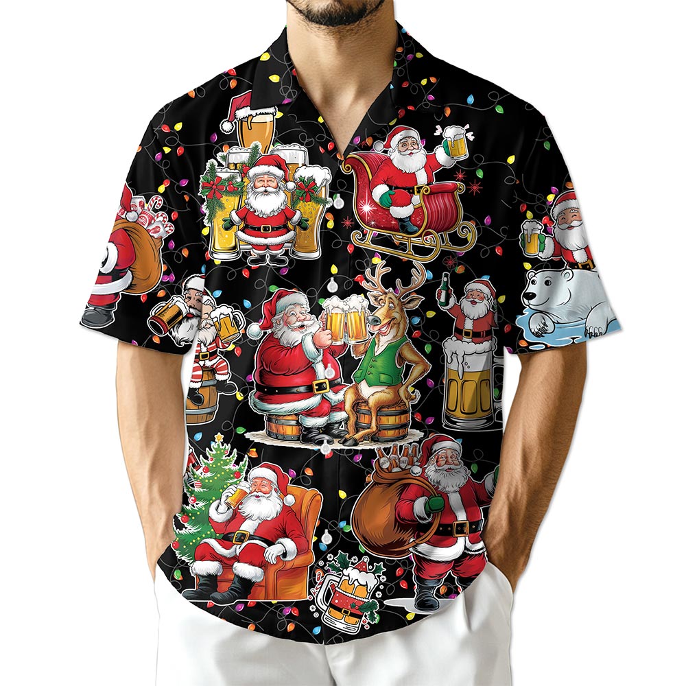 Netecom Santa Beer Lover Hawaiian Shirt for Men, Funny Christmas Drinking Holiday Button Down Summer Beach Shirt, S-5XL