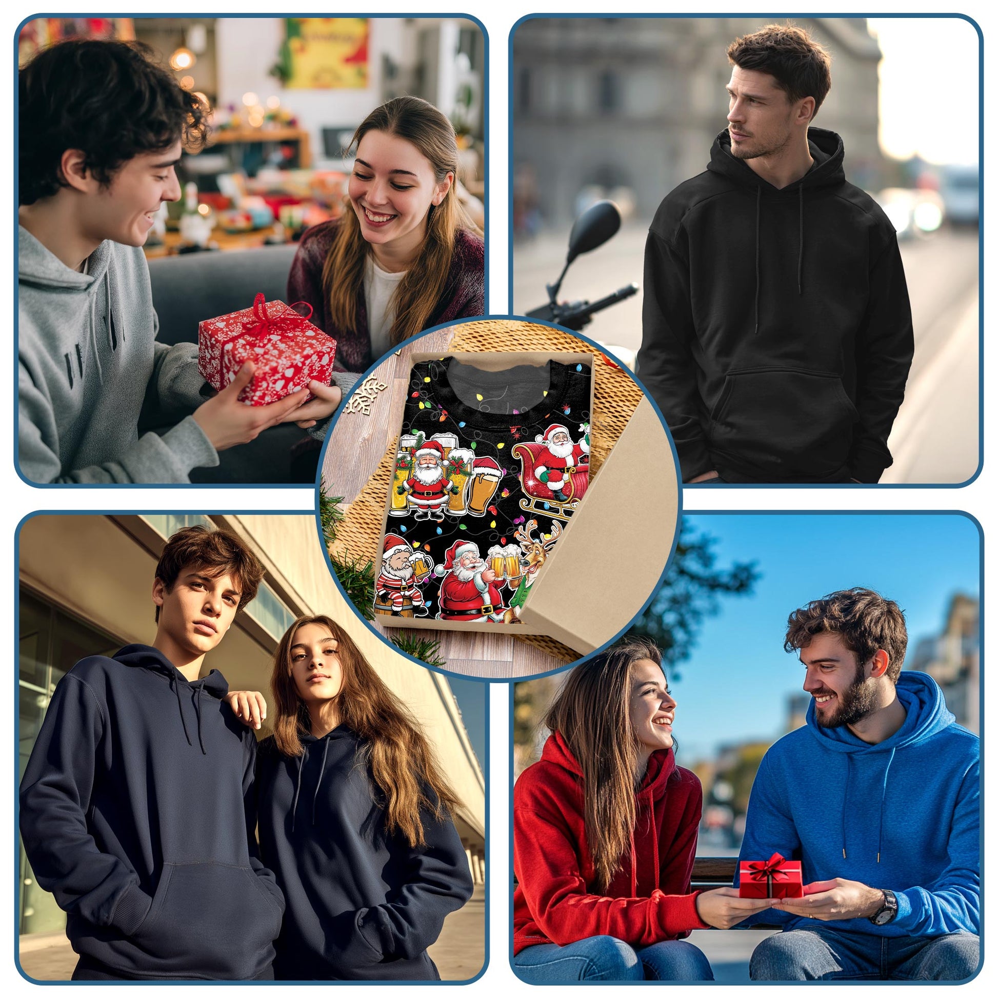 Netecom Santa Beer Lover Print Hoodie with Front Pocket, All Over Funny Christmas Drinking Graphic Sweatshirt Unisex Casual