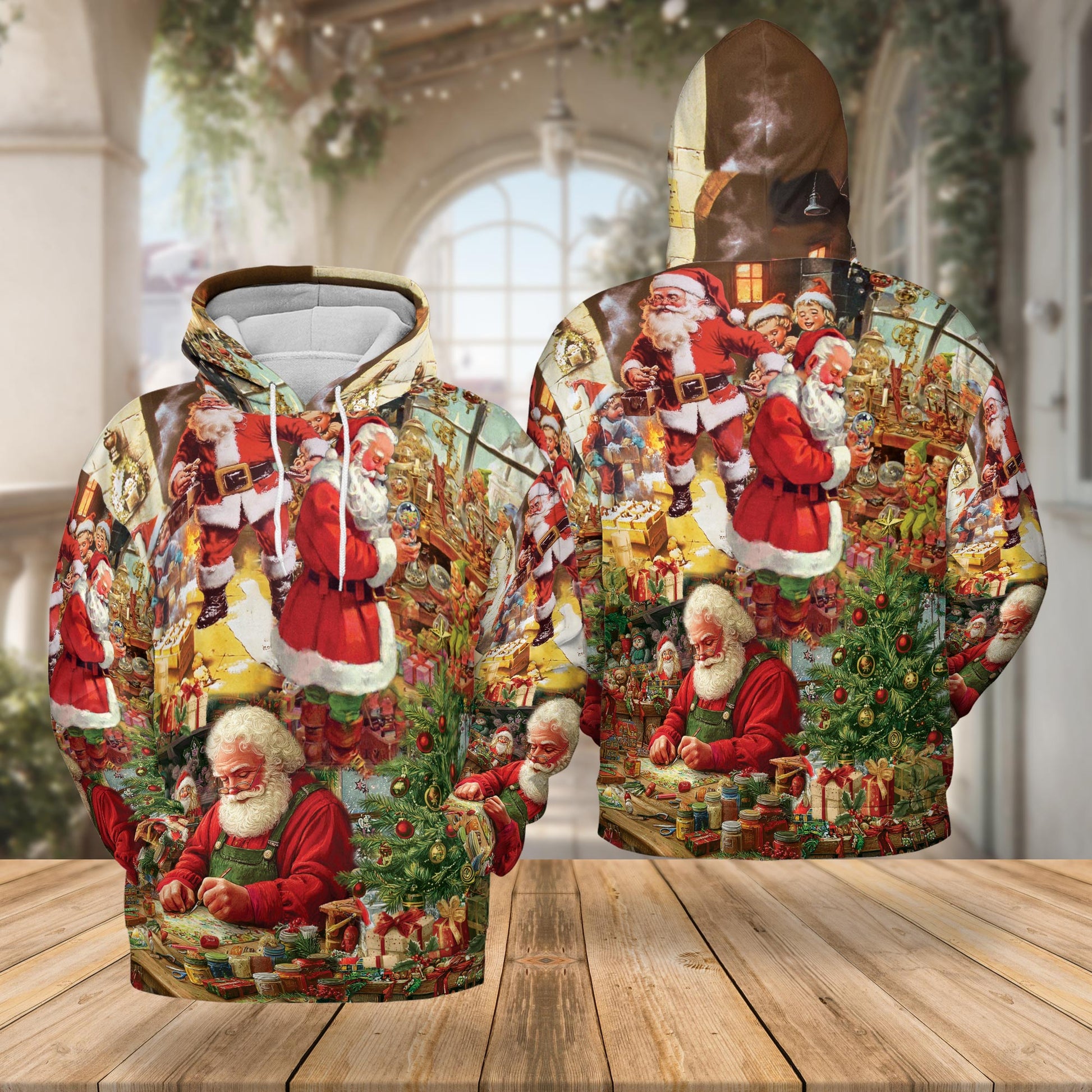 Netecom Santa Claus Christmas 3D Hoodie with Front Pocket, Unisex Casual All Over Festive Holiday Graphic Sweatshirt