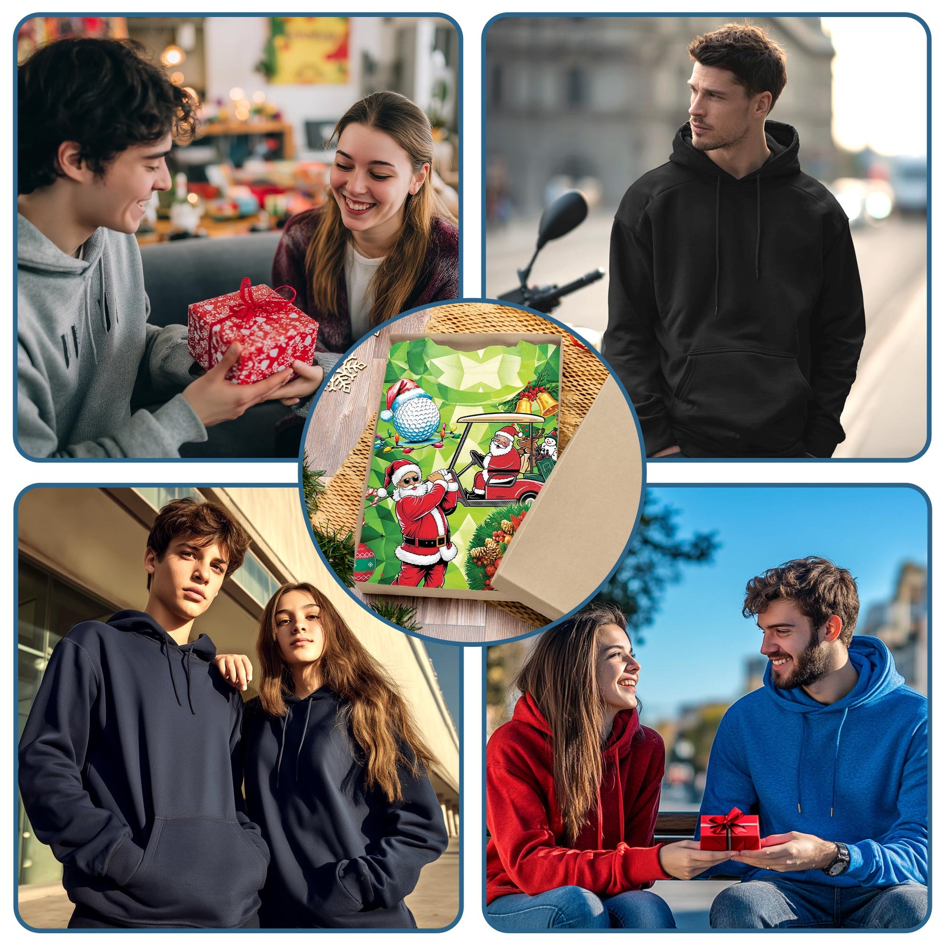 Netecom Santa Claus Christmas Print Hoodie with Front Pocket, All Over Golfer Holiday Graphic Sweatshirt Unisex Casual