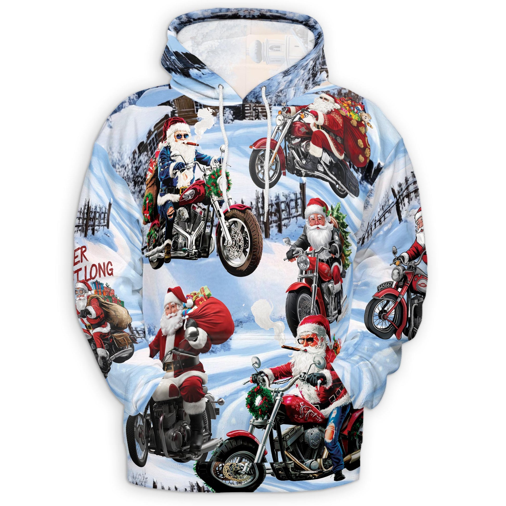 Netecom Santa Claus Motorcycle Christmas Print Hoodie with Front Pocket, All Over Graphic Winter Snow Sweatshirt Unisex Casual