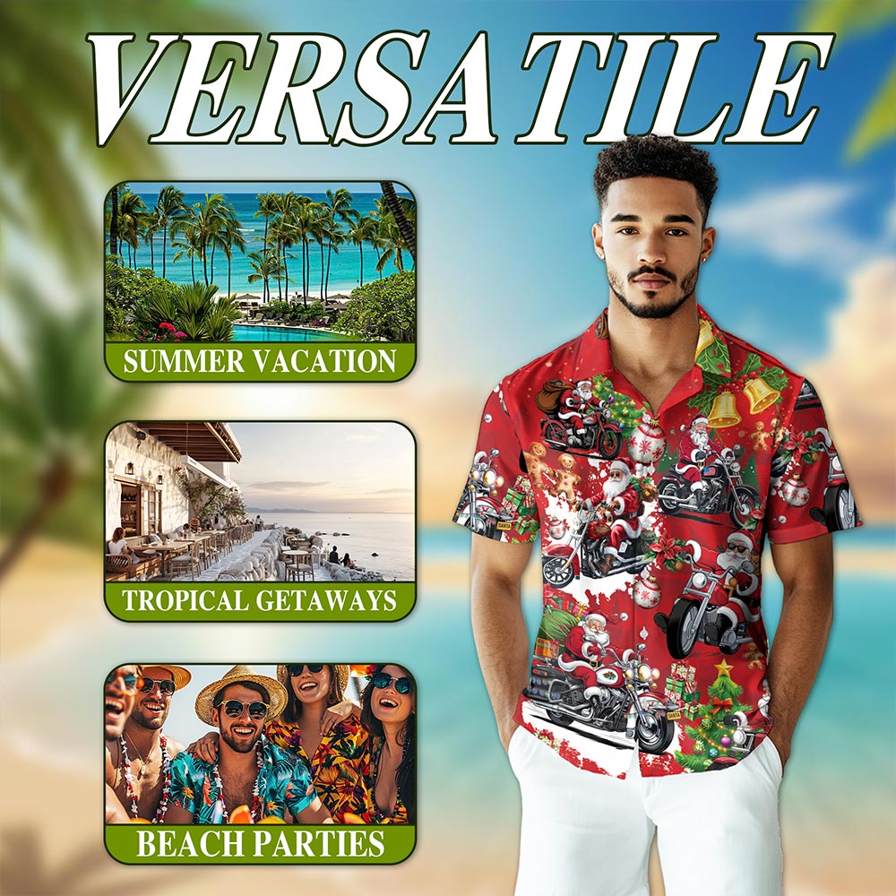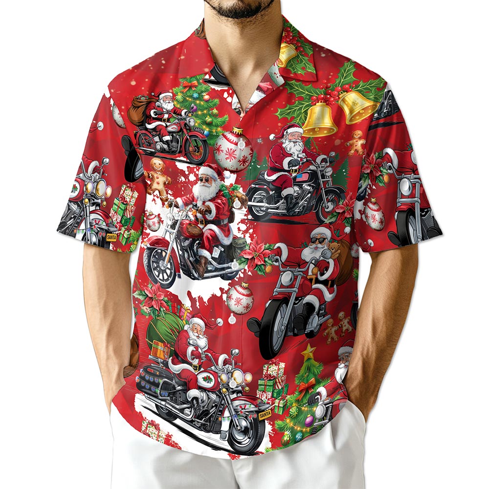 Netecom Santa Claus Riding Motorcycle Christmas Hawaiian Shirt, Funny Holiday Biker Button Down Short Sleeve Shirt, S-5XL
