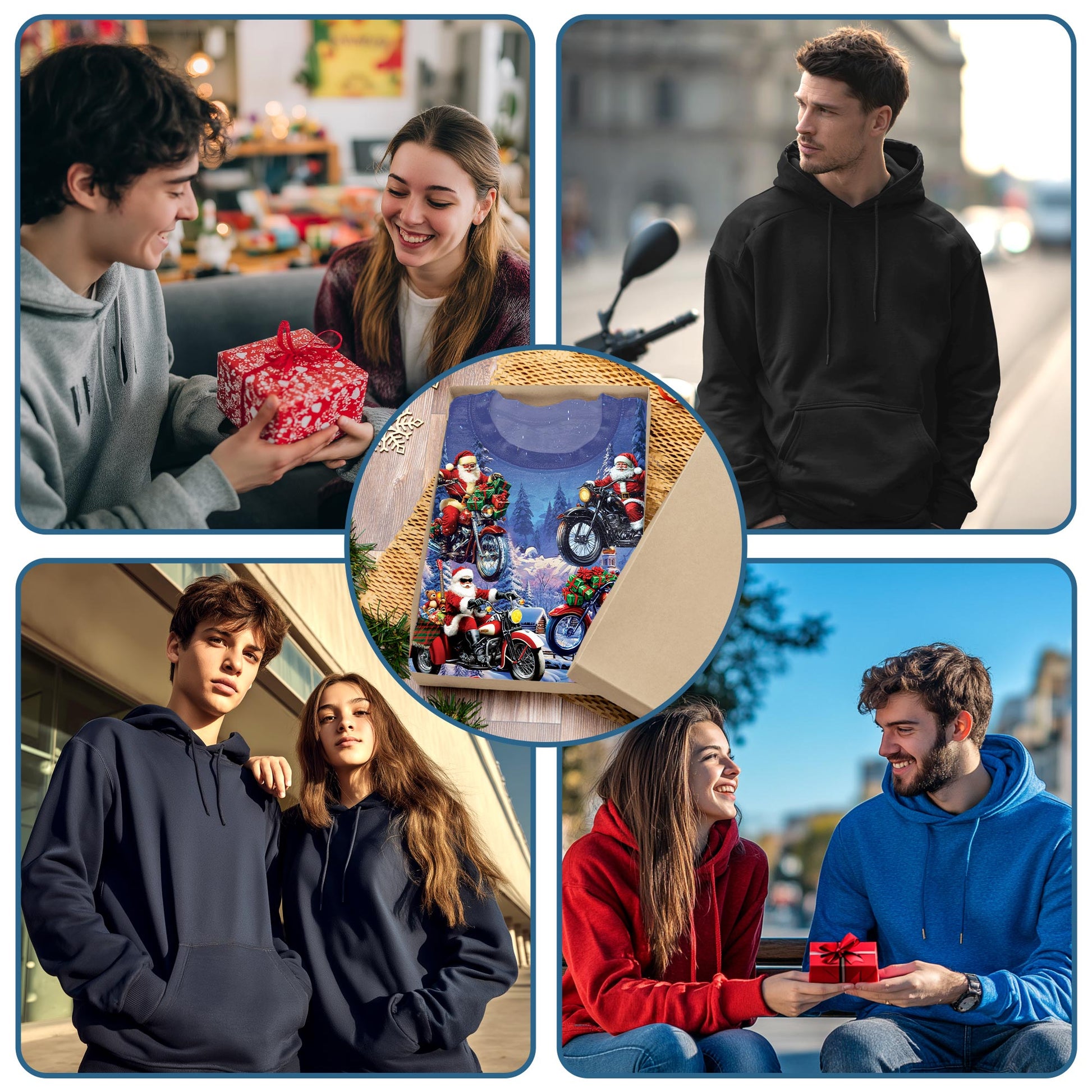 Netecom Santa Claus Riding Motorcycle Print Hoodie with Front Pocket, All Over Funny Biker Graphic Sweatshirt Unisex Casual