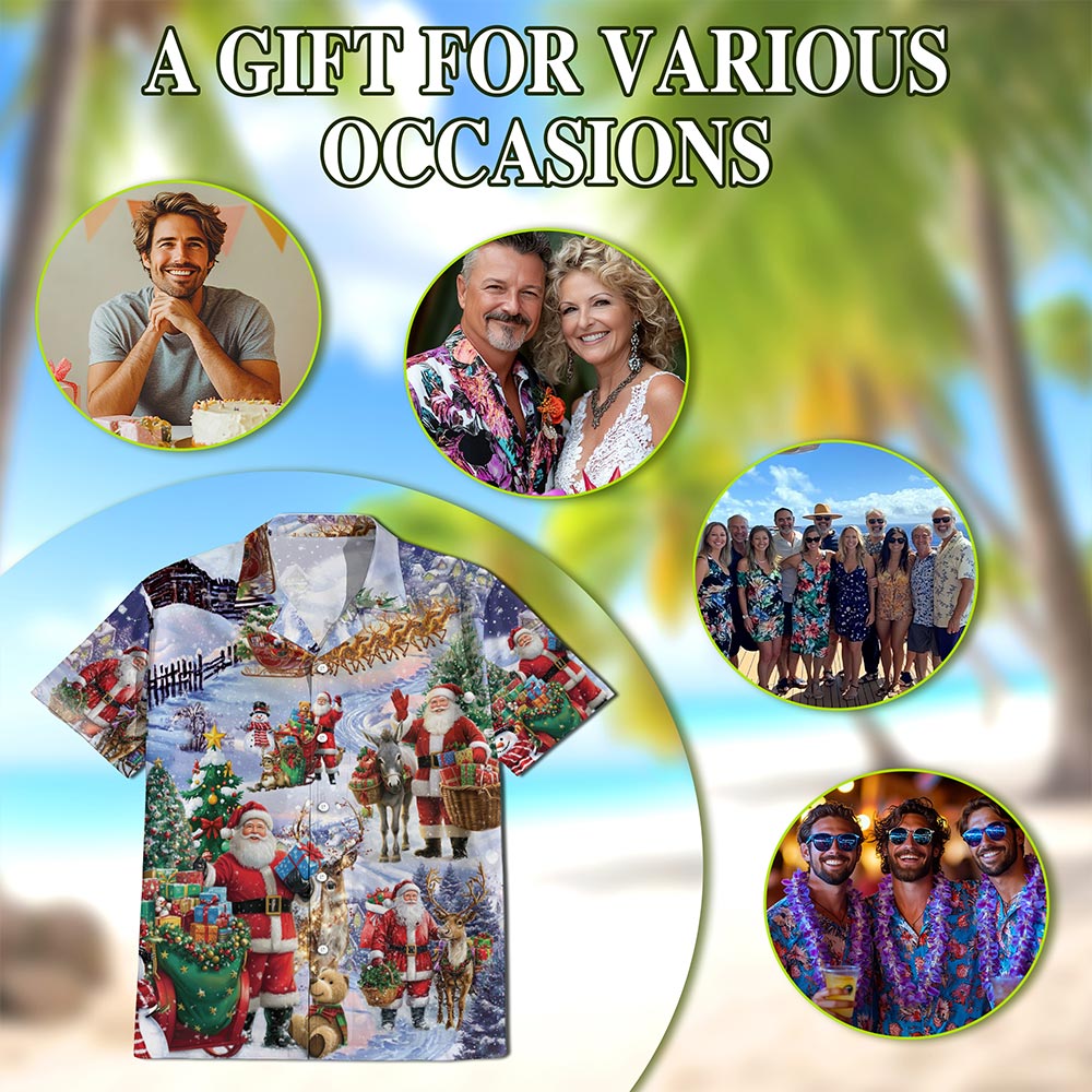 Netecom Santa Claus Snowy Christmas Village Hawaiian Shirt, Holiday Print Button Down Summer Beach Short Sleeve Shirt, S-5XL