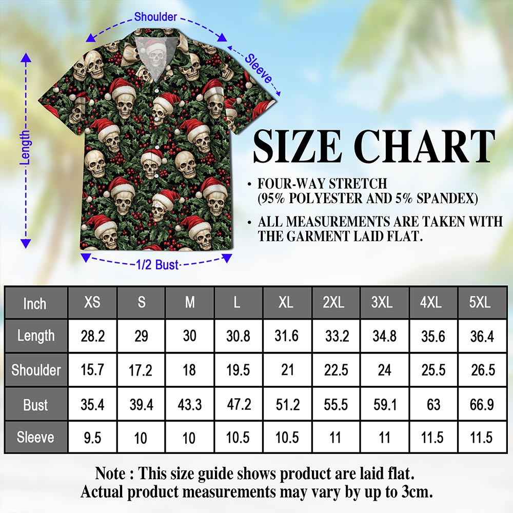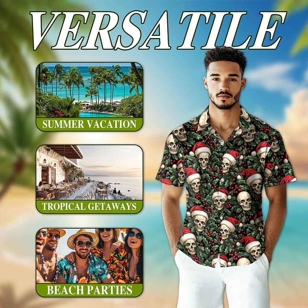 Netecom Skull Santa Hat Christmas Hawaiian Shirt for Men, Gothic Holiday Button Down Summer Beach Short Sleeve Shirts, S-5XL