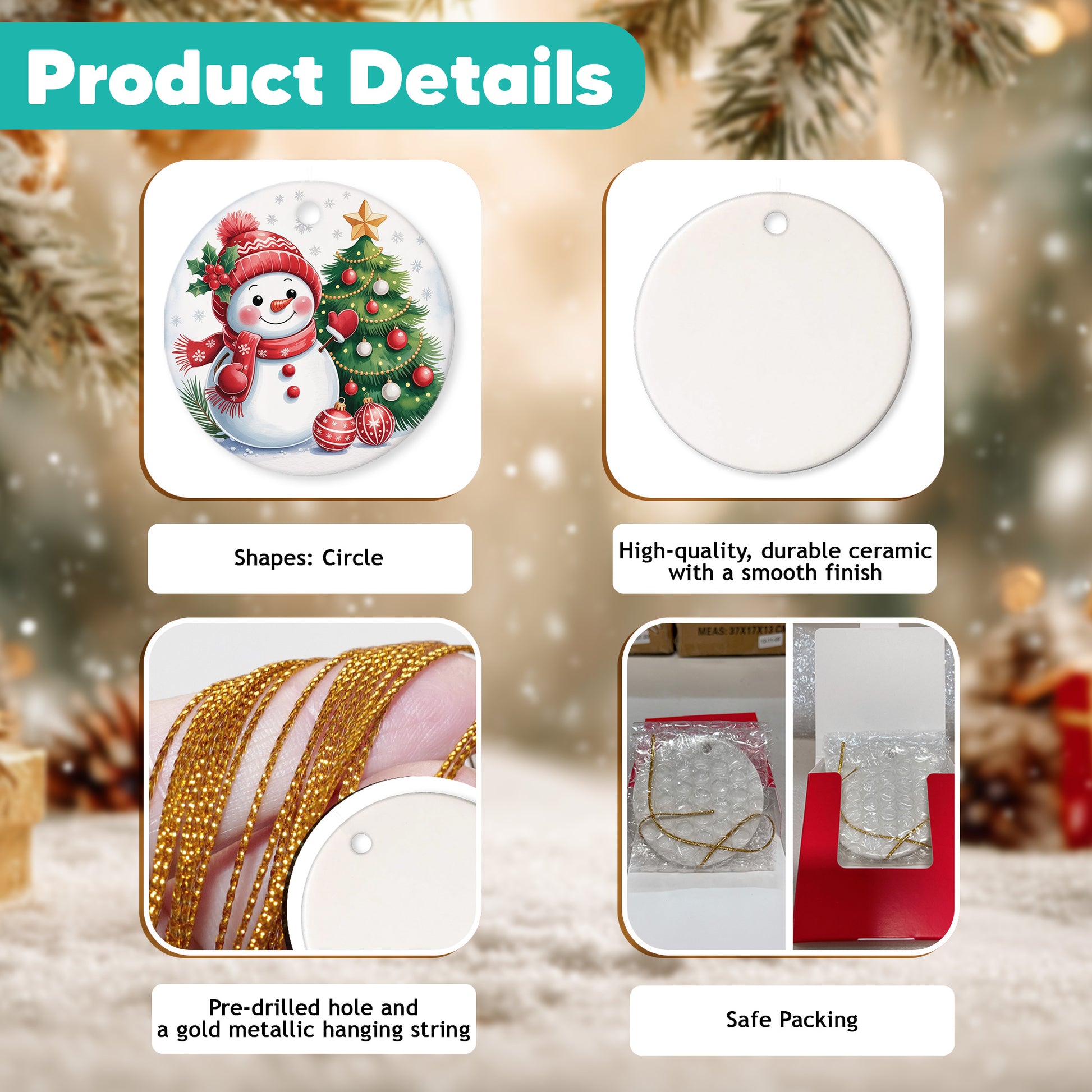 HIGH-QUALITY CERAMIC: Crafted from durable ceramic with a smooth finish, this ornament measures about 3.3 x 3.3 inches—perfect for display or gifting. The advanced printing delivers bright, crisp, high-definition designs that resist fading, offering a more elegant look compared to wooden decorations.
