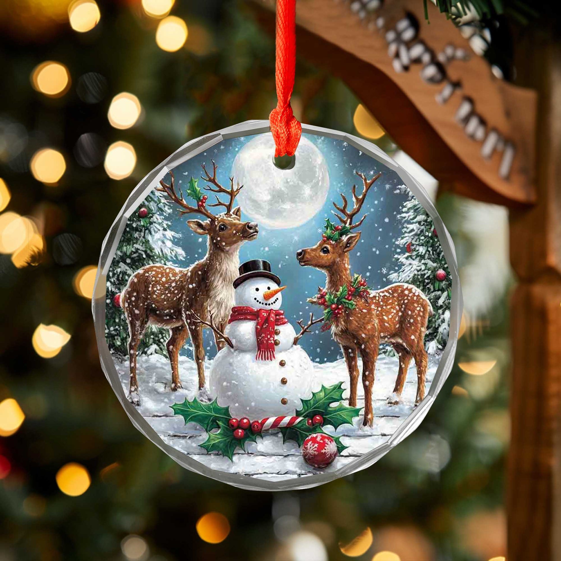 Netecom Snowman and Deer Glass Ornament – Christmas Tree Decoration, Festive Holiday Keepsake Gift, 3 in