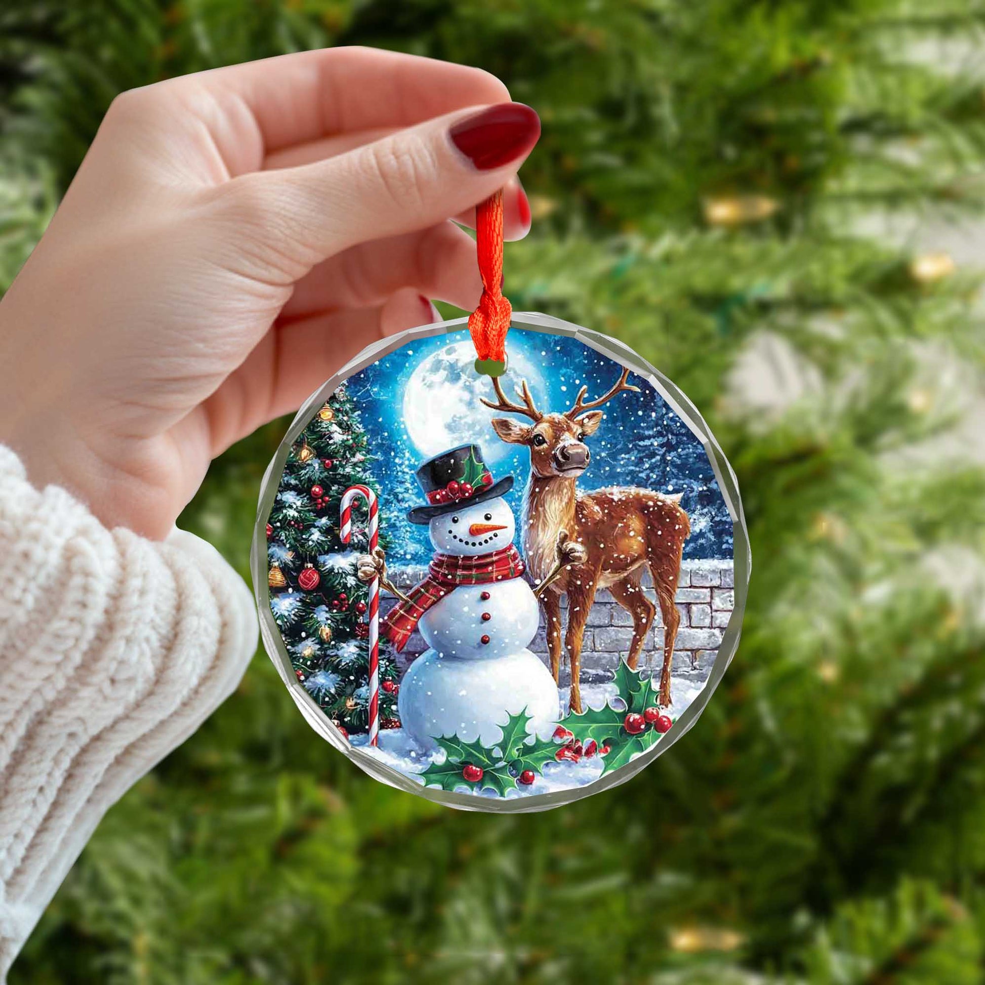 Netecom Snowman and Reindeer Glass Ornament – Christmas Tree Decoration, Holiday Keepsake Gift, 3 in
