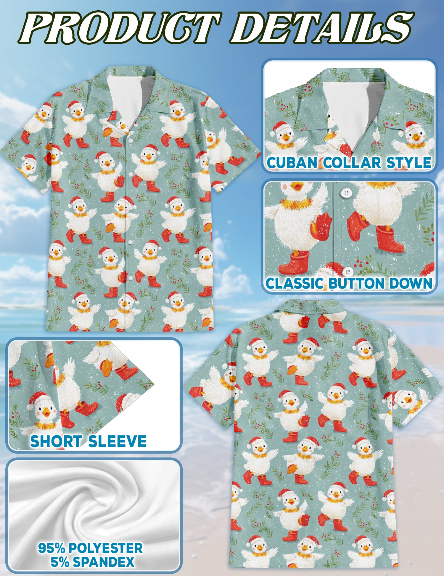 Netecom Snowy Christmas Duck Hawaiian Shirt for Men, Cute Duck Winter Print Button Down Short Sleeve Shirt