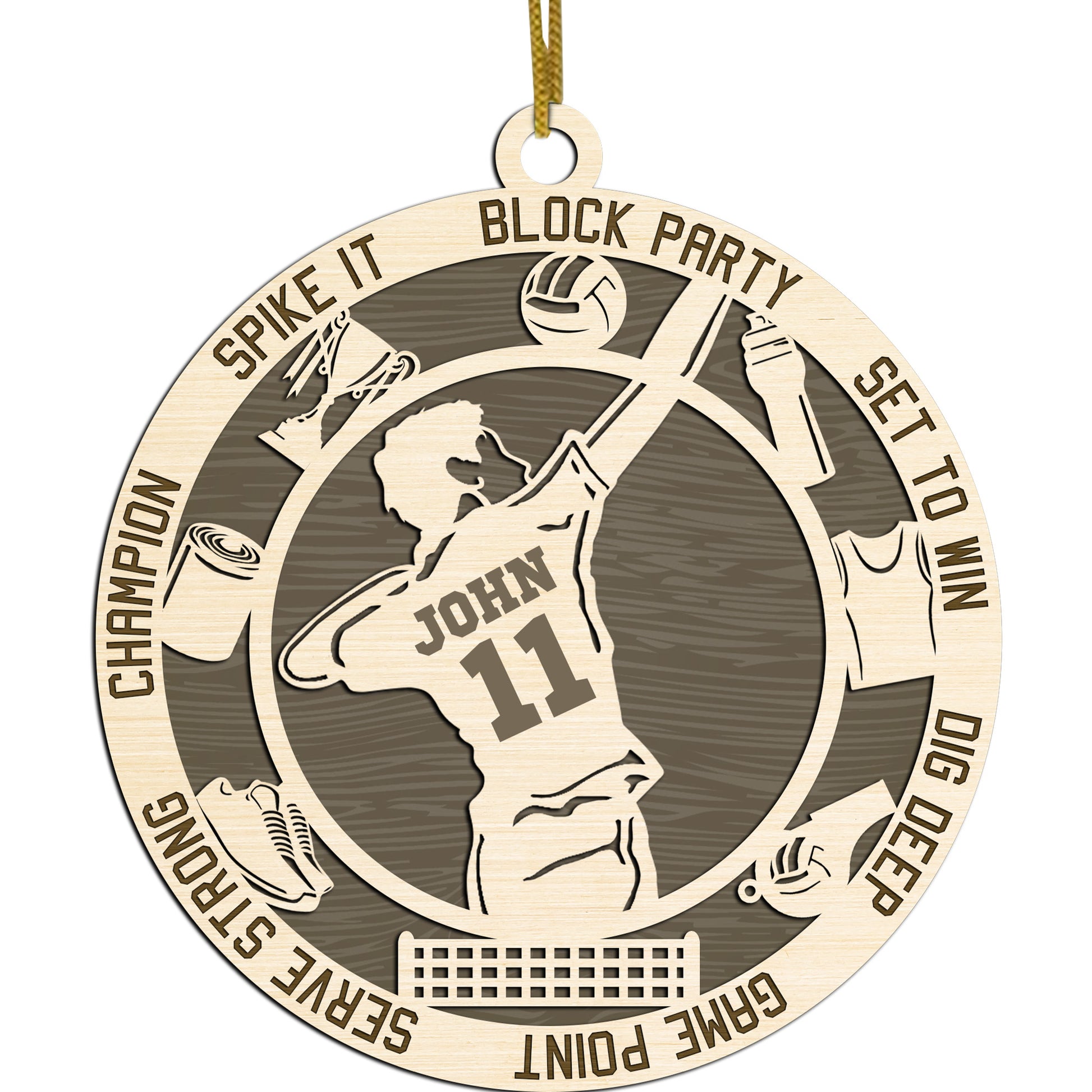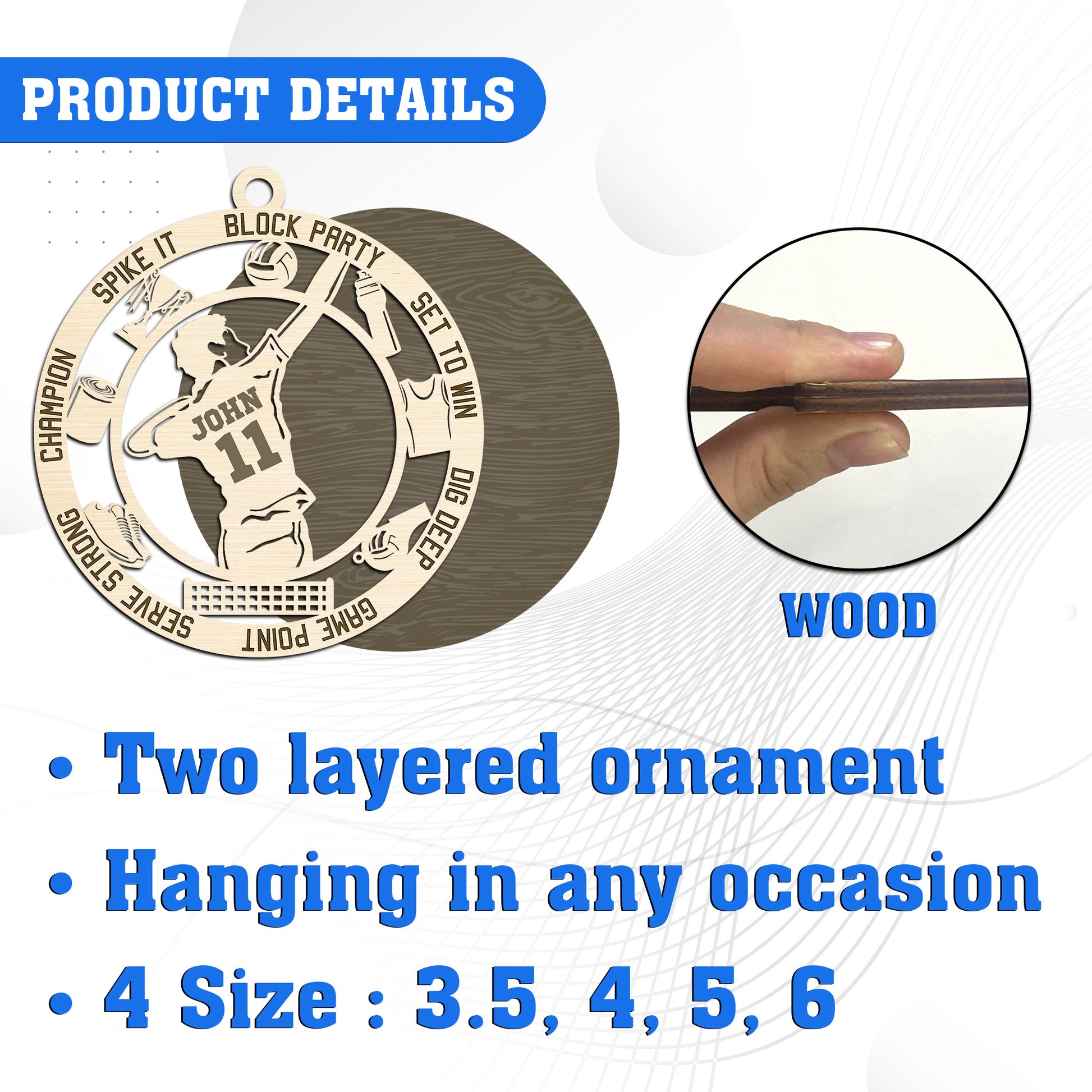 Celebrate the passion for volleyball with this personalized wooden ornament featuring a dynamic 2-layer design that showcases a volleyball player in action.