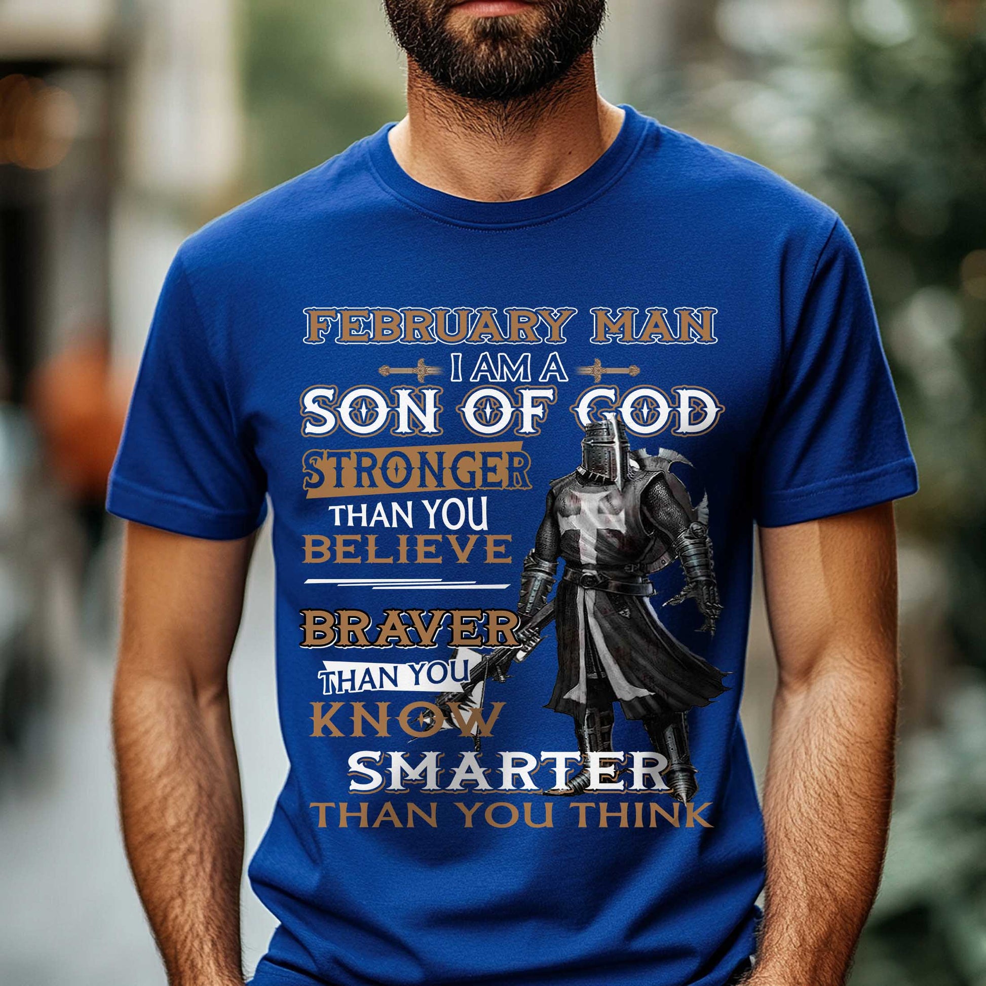 Netecom February Man T-Shirt I Am A Son Of God Stronger Than You Believe Braver Than You Know Smarter Than You Think Christian Graphic Tee Gift