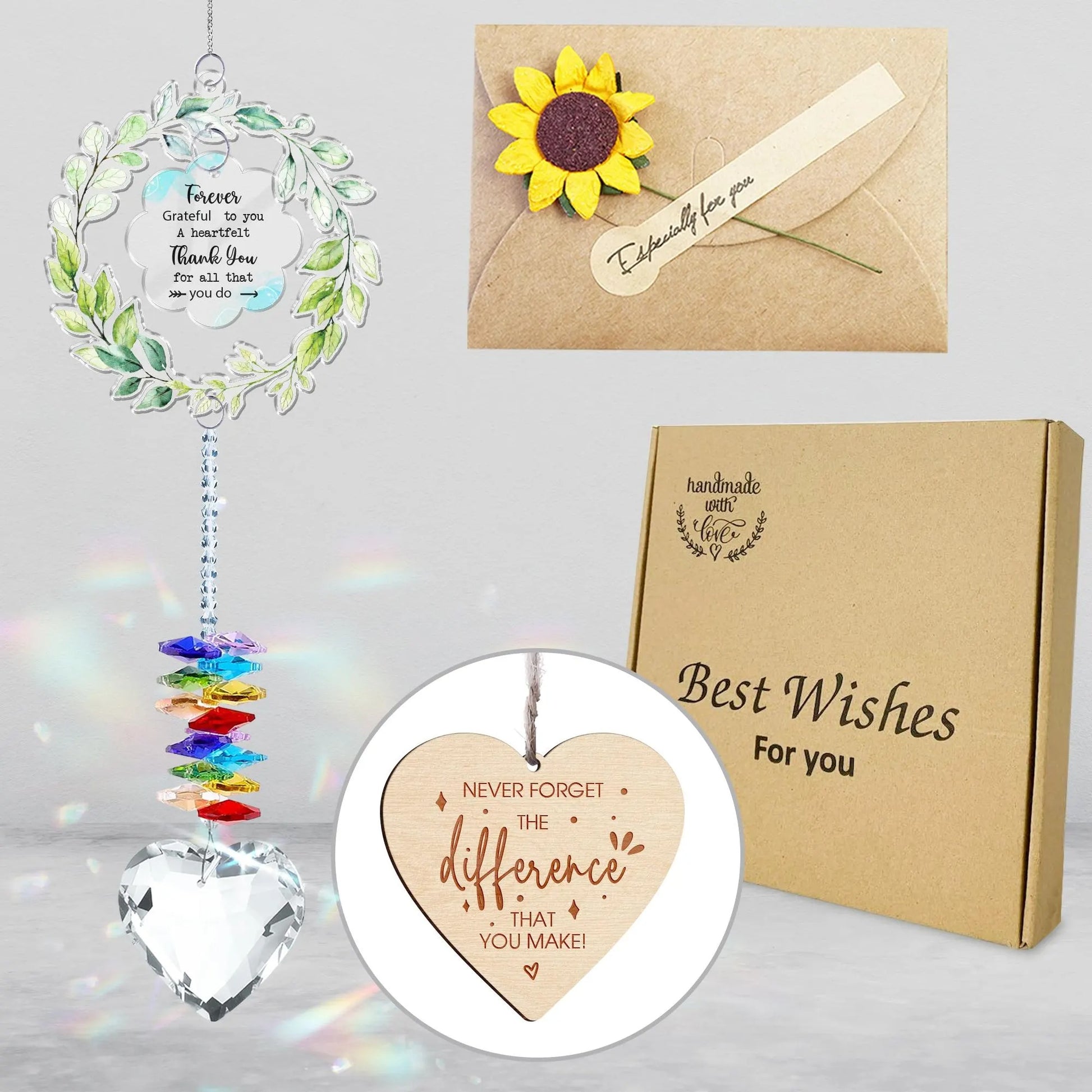 Netecom Thank You Appreciation Crystal Suncatcher Gift for Women, Gratitude Window Hanging, Teacher Thank You Gift, Inspirational Crystal Decor