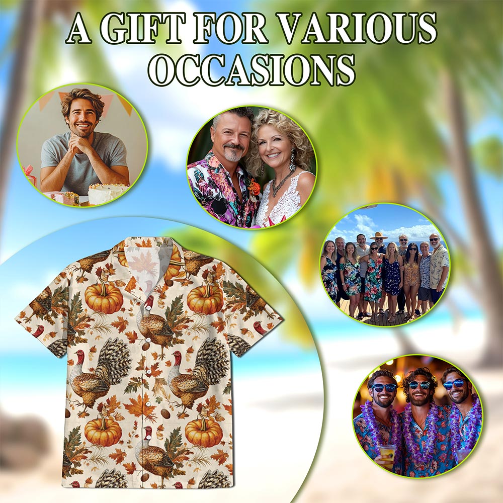 Netecom Thanksgiving Turkey Sun Hawaiian Shirt for Men, Happy Turkey Day Button Down Summer Beach Short Sleeve Shirts, S-5XL