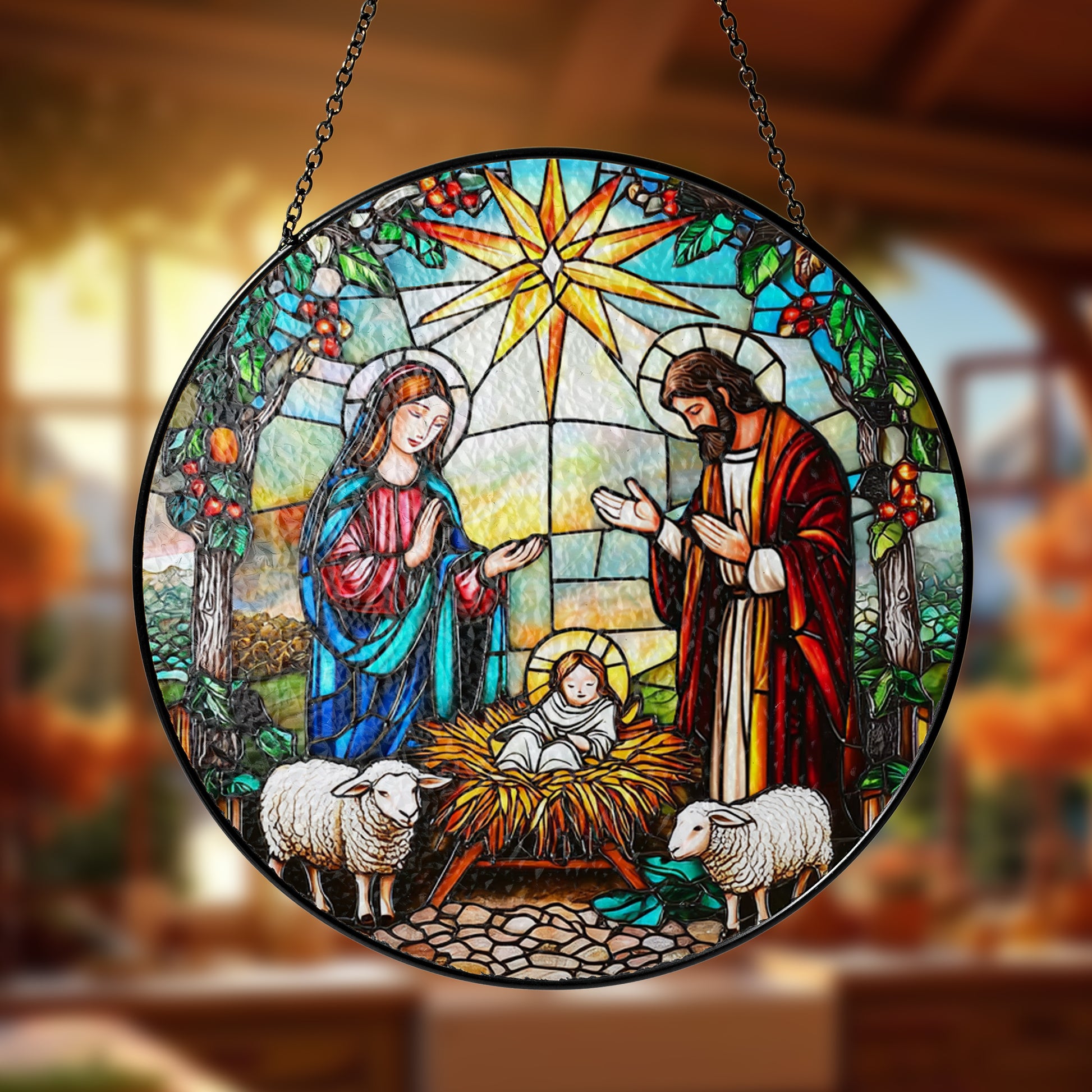 🌟 The Holy Family Nativity Suncatcher – A Timeless Christmas Décor Piece