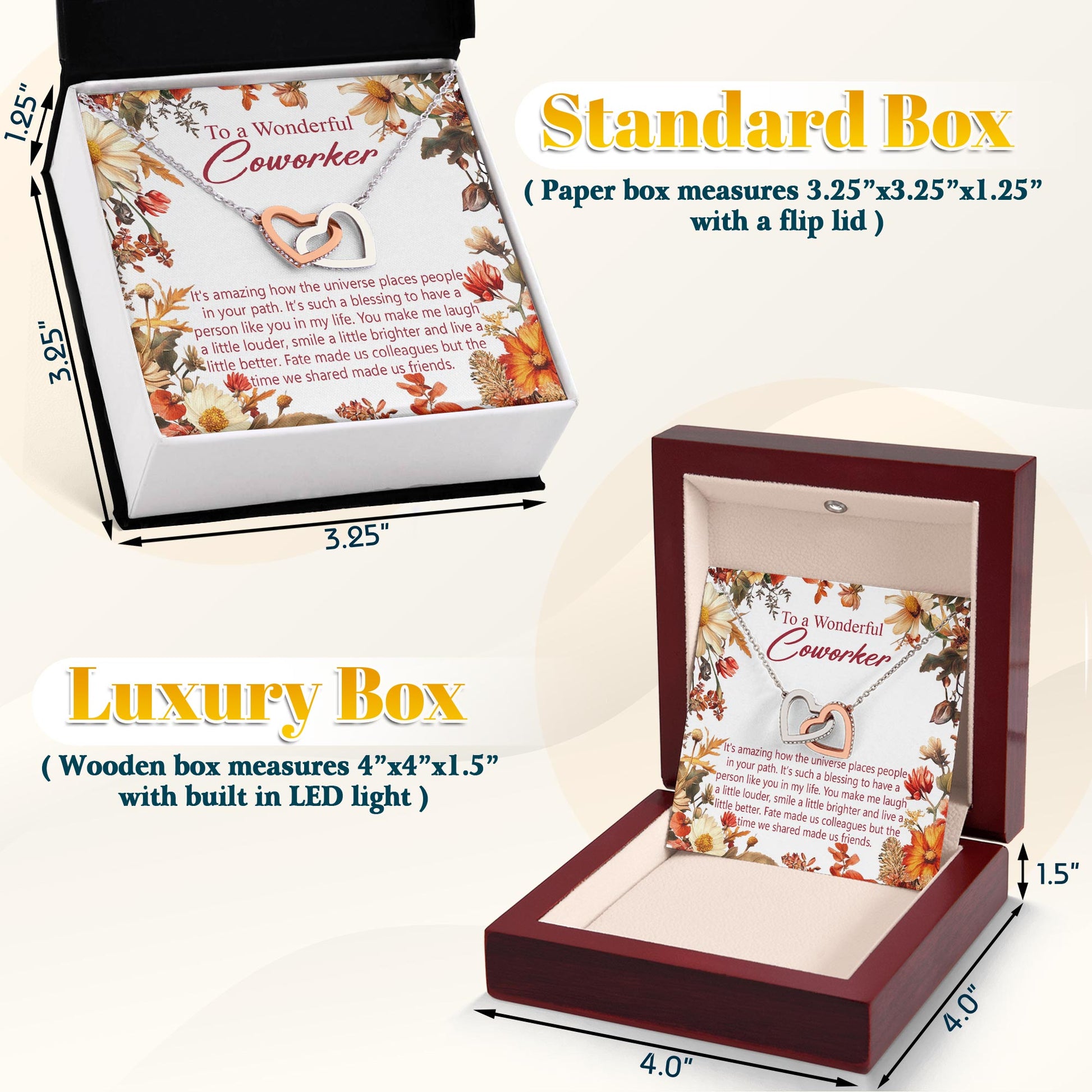 Netecom To A Wonderful Coworker Necklace, Message Card with Name, Interlocking Heart Jewelry Gift for Birthday, Christmas for Employee Teacher Friends Her Retirement