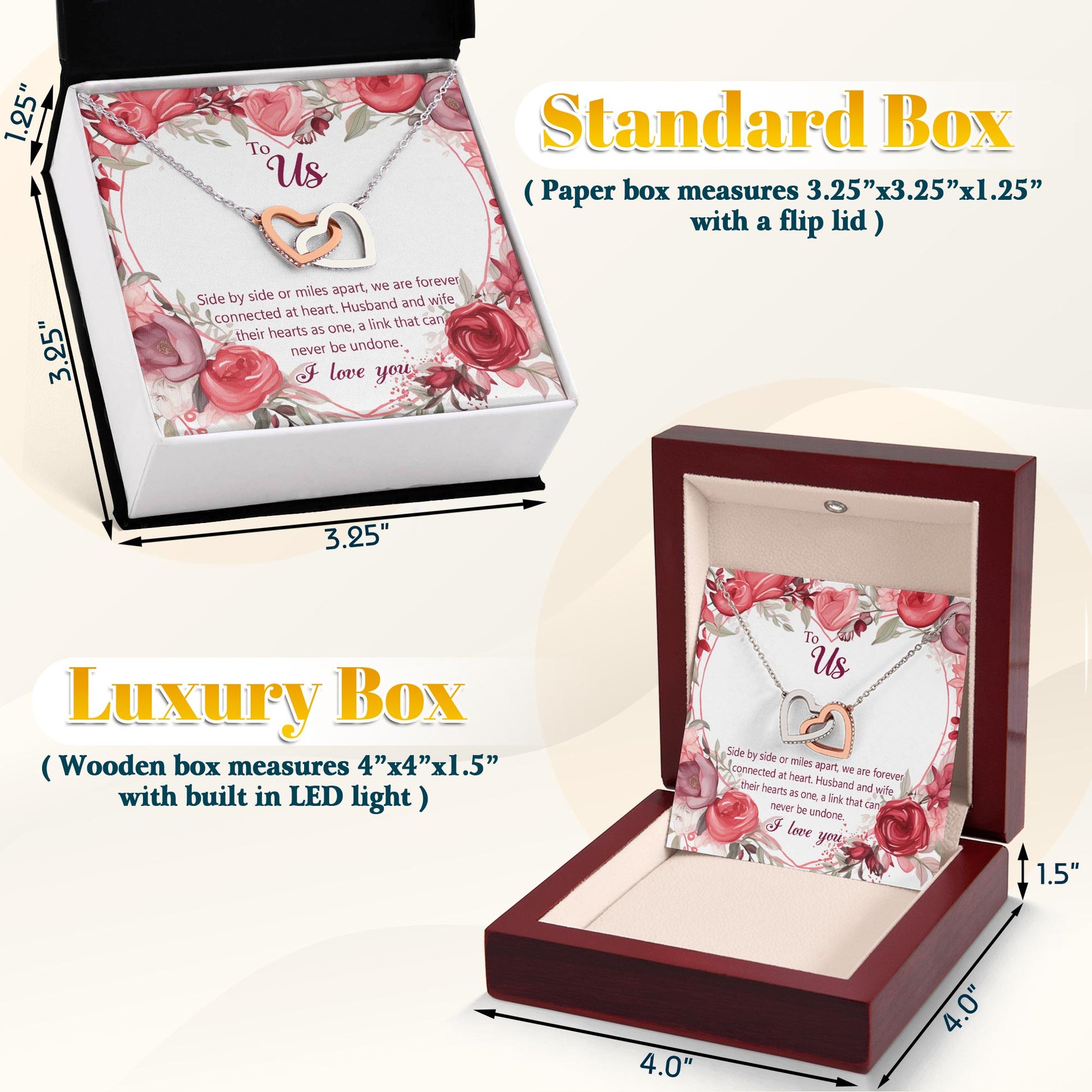Netecom To Us Necklace for Couple Wife Husband, Message Card with Name, Interlocking Heart Jewelry Gift for Wedding, Anniversary, Birthday, Christmas
